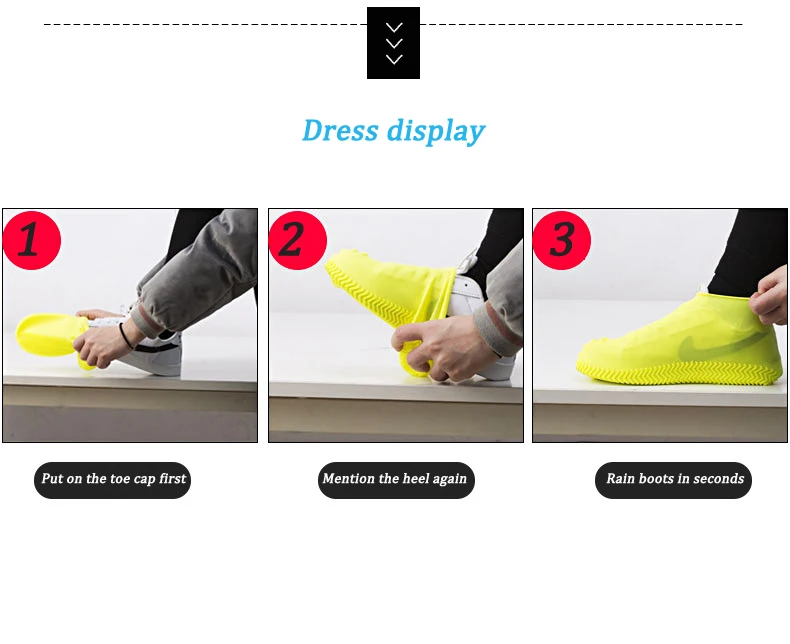 Название продукта: силиконовый водонепроницаемый нескользящий чехол для обувиМодель продукта:Подходит для большинства туфель: обувь на плоской подошве, спортивная обувь, сандалии, кожаная обувь, походная обувь, зимние ботинки и т. д. (не подходит для высоких каблуков, Шипованная обувь)Материал изделия: высокоэластичный силиконПосылка включает в себя: 1 пара чехлов для обувиЦвет изделия: черный, розовый, красный, синий, белый, желтый, серый(Поскольку каждый дисплей отличается, цвет товара, который вы видите, будет отличаться, конкретный цвет зависит от фактического товара)Особенности:1. Есть три размера S, M и L, подходит для разных групп людей;2. Выбранный силиконовый материал, сильная гибкость, может быть нарисован по желанию, и легко подходит для обуви разных размеров;3. Бесшовный интегрированный продукт, чтобы уменьшить вероятность попадания воды в обувь и сохранить чистоту внутренней обуви;4. Конструкция подошвы не скользит и износостойкая, Увеличивает трение и безопасна для ношения;5. Его можно сложить по желанию без деформации, его удобно хранить и можно носить с собой;6. Силиконовый материал, краску чистой водой и повторное использование;Меры предосторожности:1. Держите подальше от открытого огня;2. Подходит для использования на открытом воздухе, домашняя гладкая и водоокрашенная напольная плитка не подходит для использования;3. Дети должны использоваться под наблюдением охранника и не могут использоваться в качестве головного убора, чтобы избежать удушья;4. Держите подальше от острых предметов