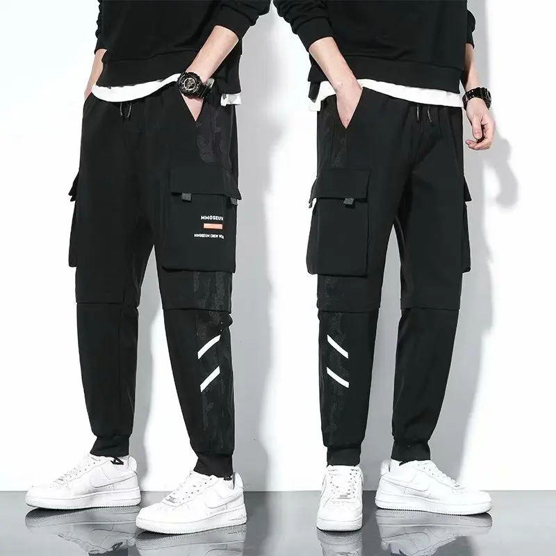 Джоггеры 2020, брюки-карго для мужчин, повседневные мужские брюки с карманами в стиле хип-хоп, тренировочные штаны, уличная одежда, штаны Techwear с лентами
