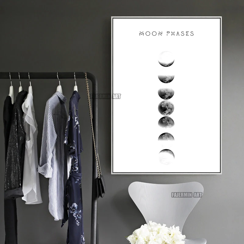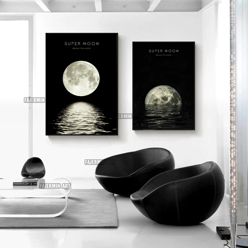 Художественные плакаты с изображением Луны и отражения на холсте для интерьера, черно-белые Современные настенные художественные Плакаты для гостиной, домашние декоративные картины