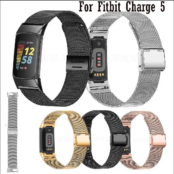 Ремешок для часов из нержавеющей стали для Fitbit Charge 5 Smartwatch, металлический сменный ремешок, Миланский Браслет, аксессуары, браслет