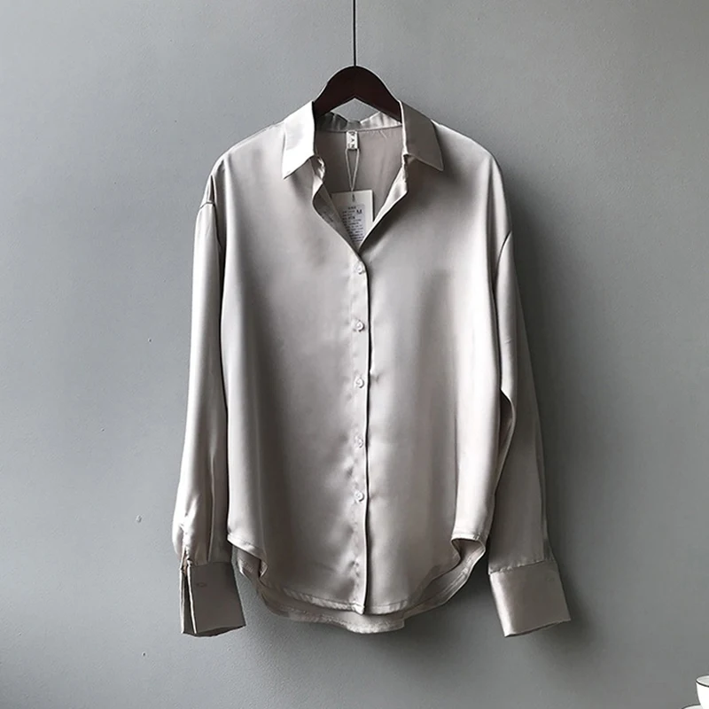 Номер моделиAutumn Fashion Button Up Satin Silk Shirt Vintage Blouse Women White