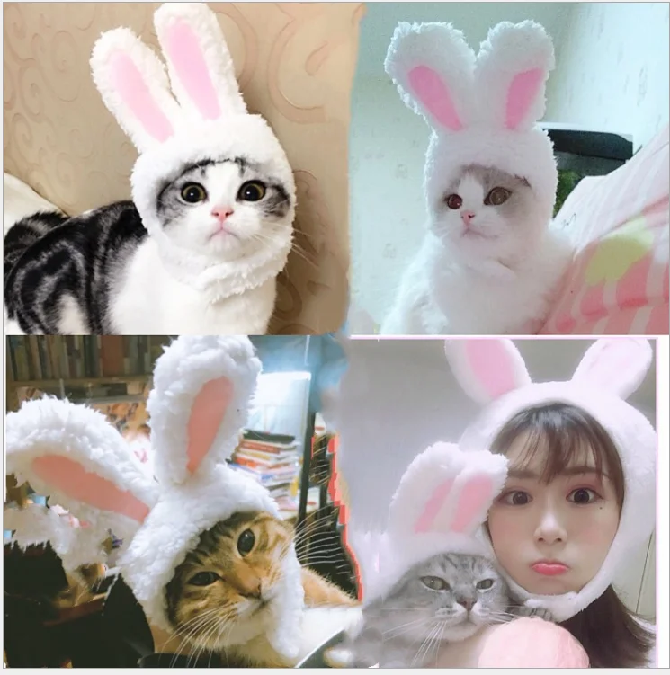 Забавная шапка для собаки, кошки, костюм, теплая шапка-кролик, ново...