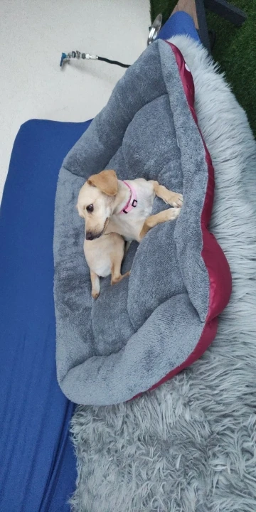Прибыл, как в описании фото, однако моя собака порвала ткань и начала принимать пену внутри