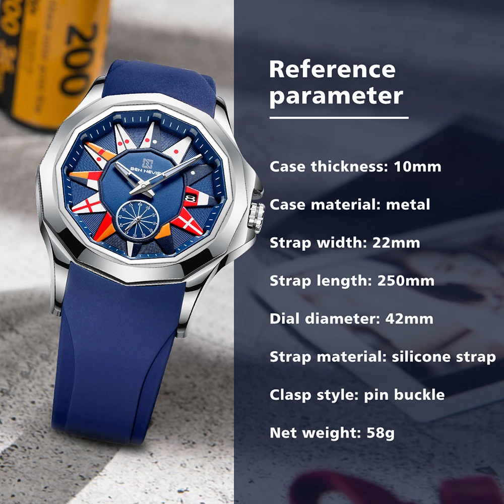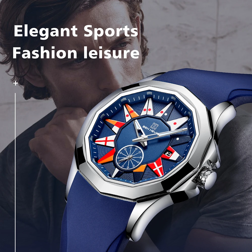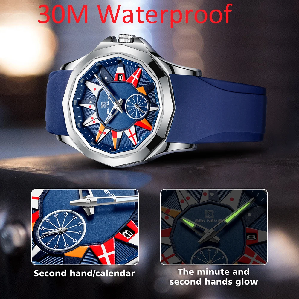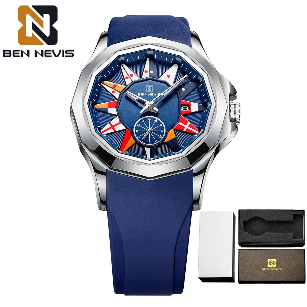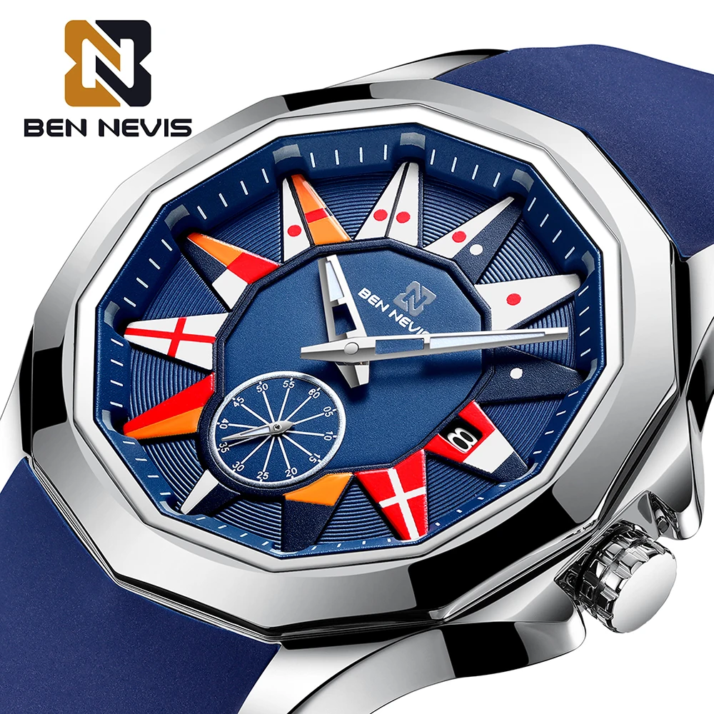 BEN NEVIS 2021 Новые Креативные кварцевые часы с морским флагом, мужские часы с календарем, Военные Спортивные Мягкие силиконовые водонепроницаемые часы с ремешком, Relogio