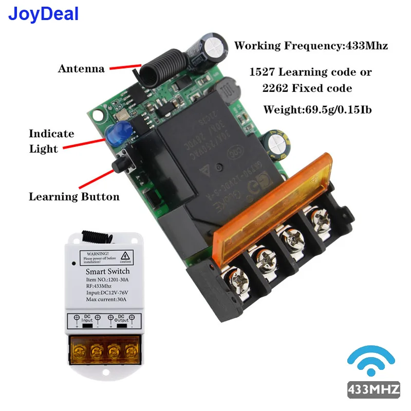 Универсальный беспроводной пульт дистанционного управления 433 МГц, 12 В, 24 В, 60 в, 72 в, 30А, реле высокой мощности, модуль приемника для автомобиля, светильник, водяной насос