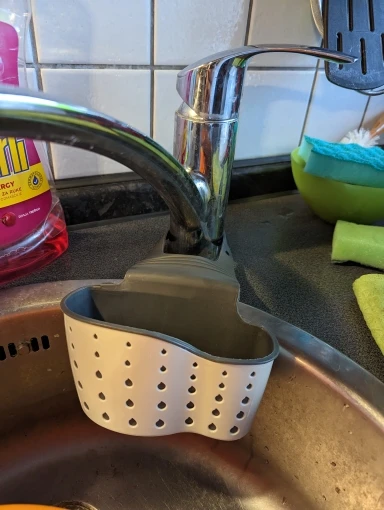 Для меня штука оказалась бесполезной. На кране закреплять - мешает, в другом месте - далеко от раковины. Описанию соответствует.