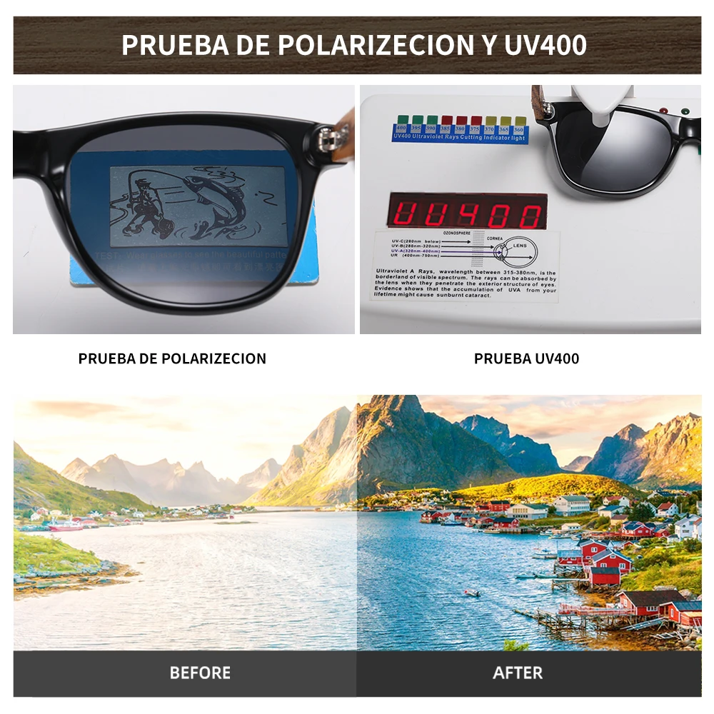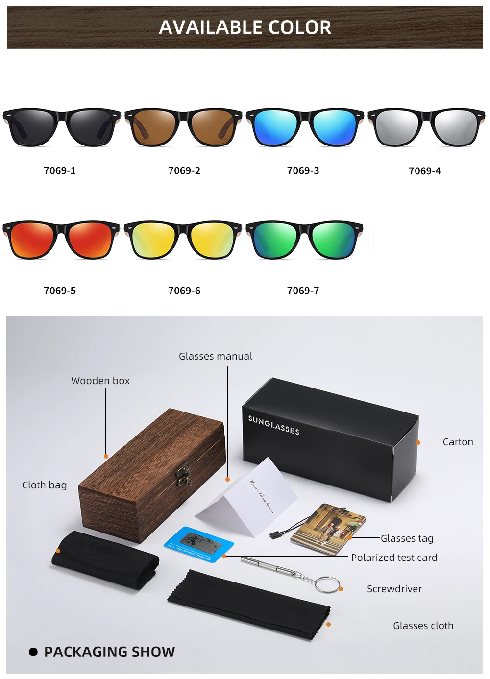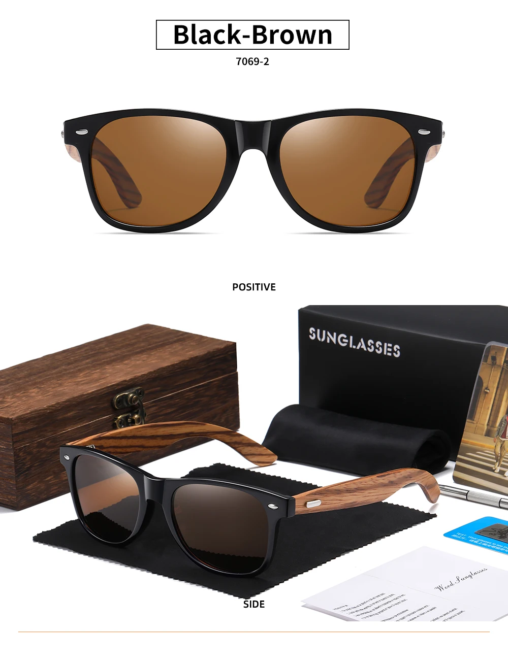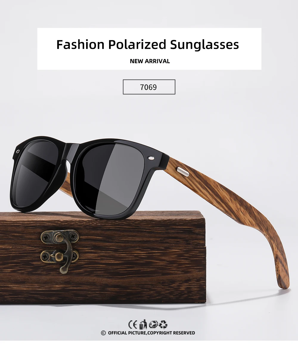 Мужские солнцезащитные очки с поляризацией, в деревянной коробке