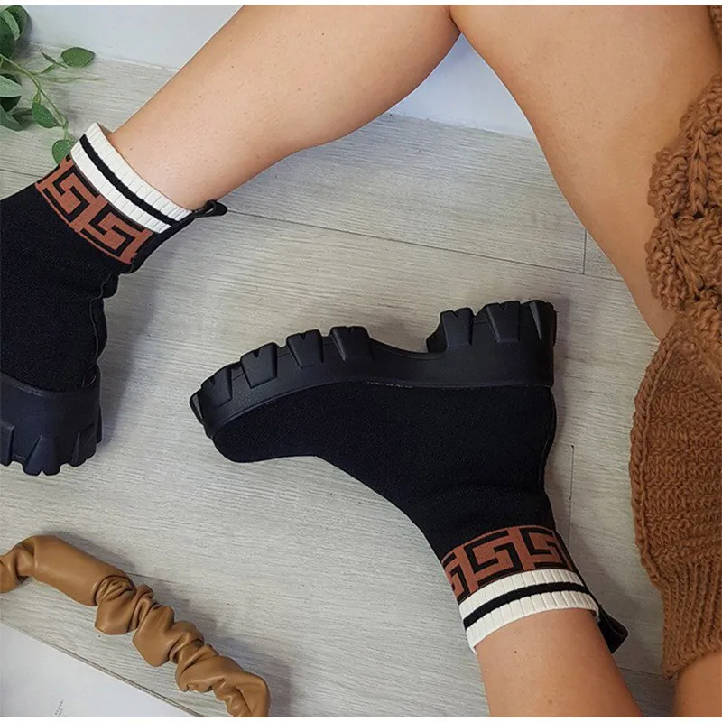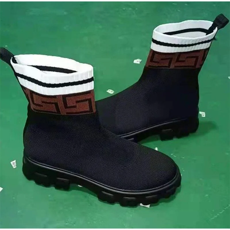 Женские ботильоны на толстой подошве; Вязаные женские носки; Модные женские короткие ботинки из эластичной ткани; Осенняя женская обувь; Новинка 2021 года