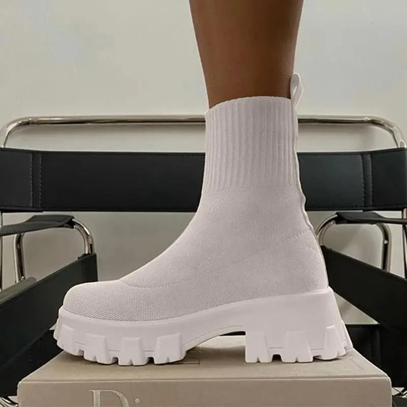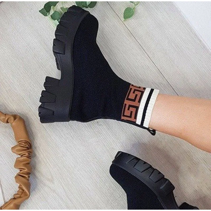 Женские вязаные ботильоны на платформе, высокие ботинки из эластичной ткани, весна 2022