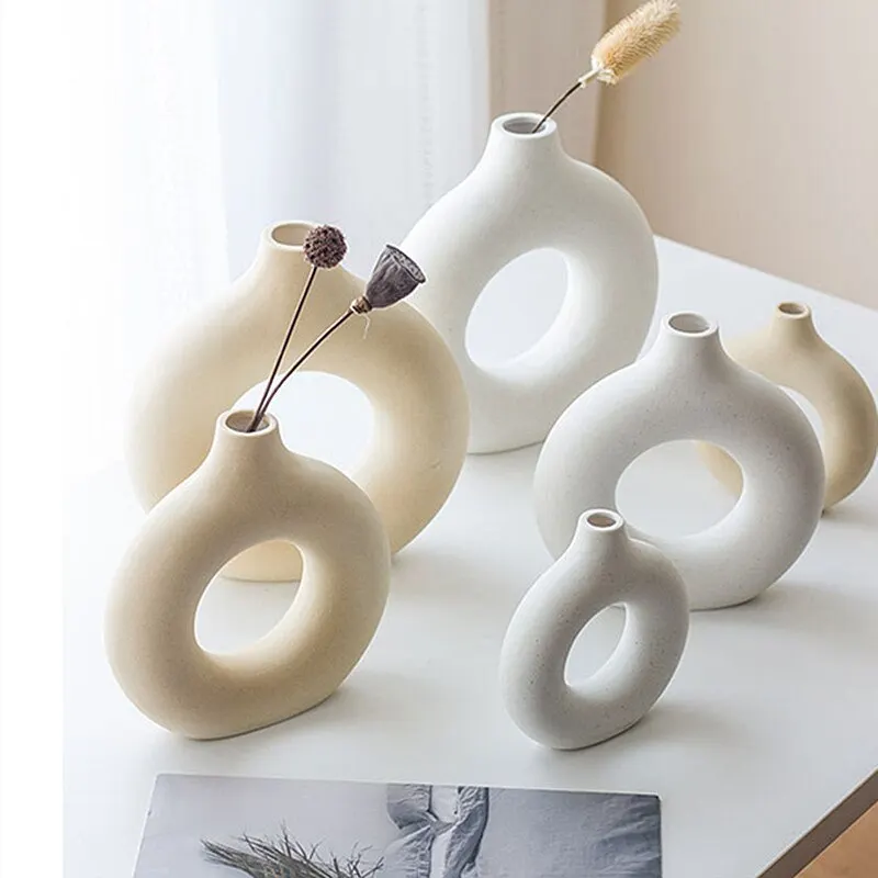Круглая керамическая ваза в скандинавском стиле с отверстиями, пончики, цветочные аксессуары, аксессуары для офиса, рабочего стола, гостиной, интерьерный декор, подарок
