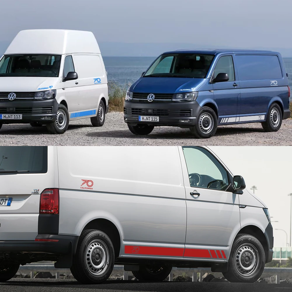 Наклейки для тюнинга кузова автомобиля Volkswagen Multivan T5 T6, версия Калифорния, 70 лет, боковая полоса, виниловые наклейки, автомобильные аксессуары, 2 шт.