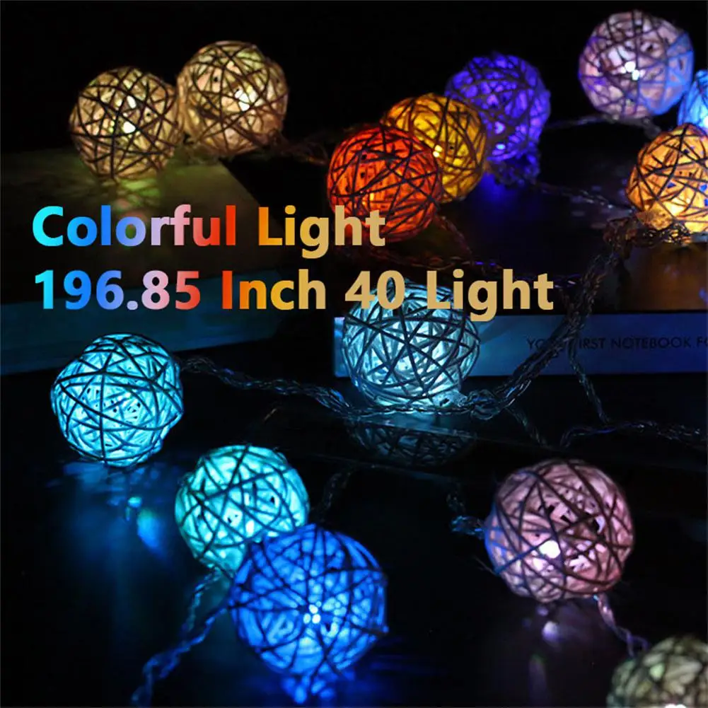 СВЕТОДИОДНАЯ Гирлянда Sepak Takraw с ротанговыми шариками, лампа-фонарь 5 м, 40 светодиодов, гирлянда теплогобелогоцветного цветов, праздничное Рождественское украшение