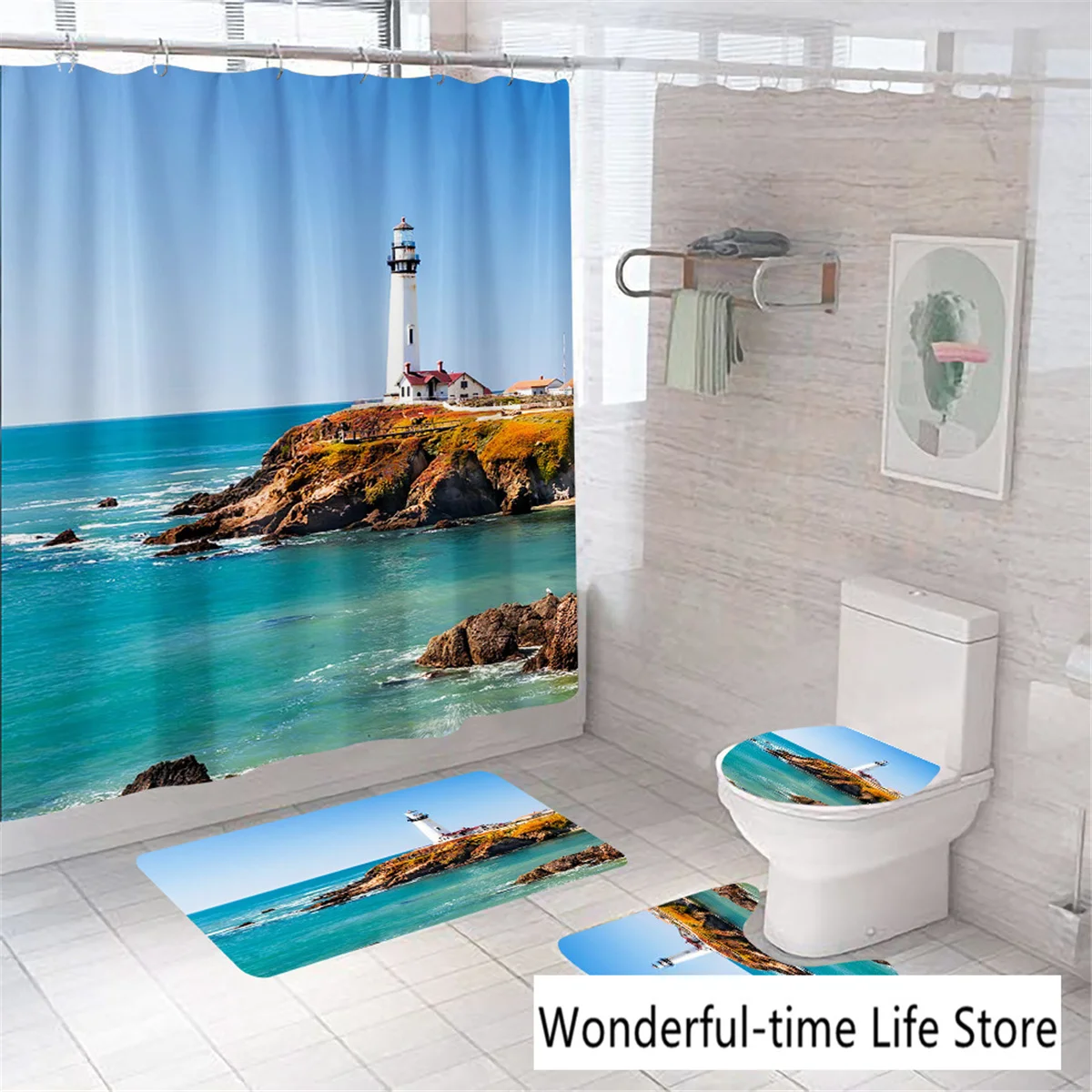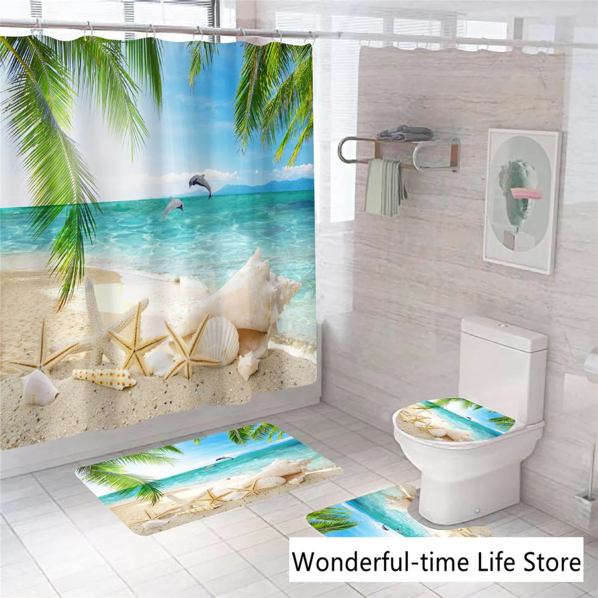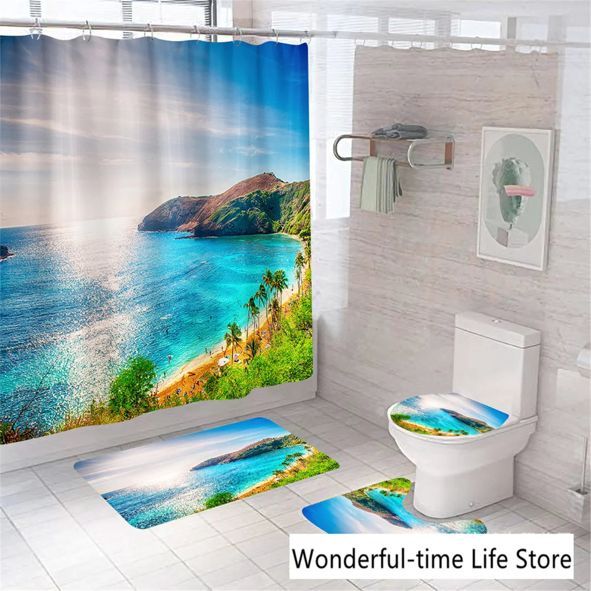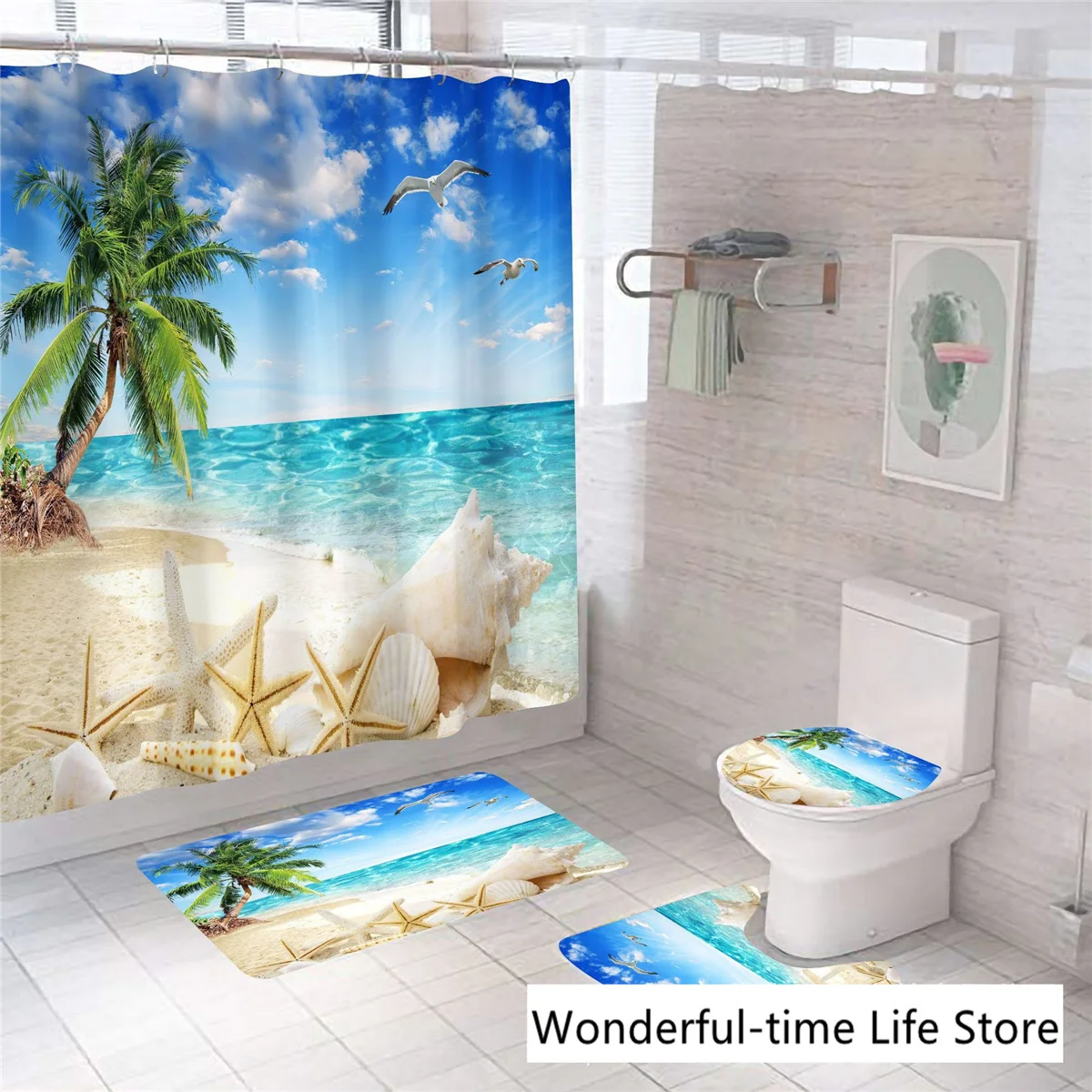 Набор занавесок для морской душа, Мягкая прочная тканевая Крышка для туалета, ковер и коврик для ванной комнаты, ландшафтный морской пейзаж, морской пляж