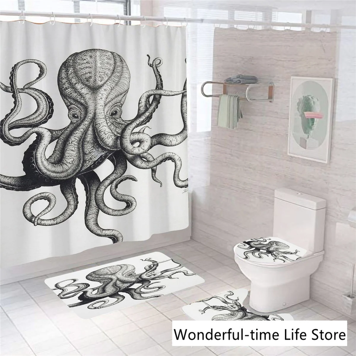 ★ВодонепроницаемостьВодонепроницаемые продукты не требуют дополнительных продуктов, чтобы вы могли лучше насладиться ванной.★Экологически чистая печать и окрашиваниеНе выцветает 3d-цветная печать, не содержит опасных химических веществ и не наносит вреда вам и вашей семье.★Легко чиститьПротрите мылом и водой для быстрой и легкой очистки.