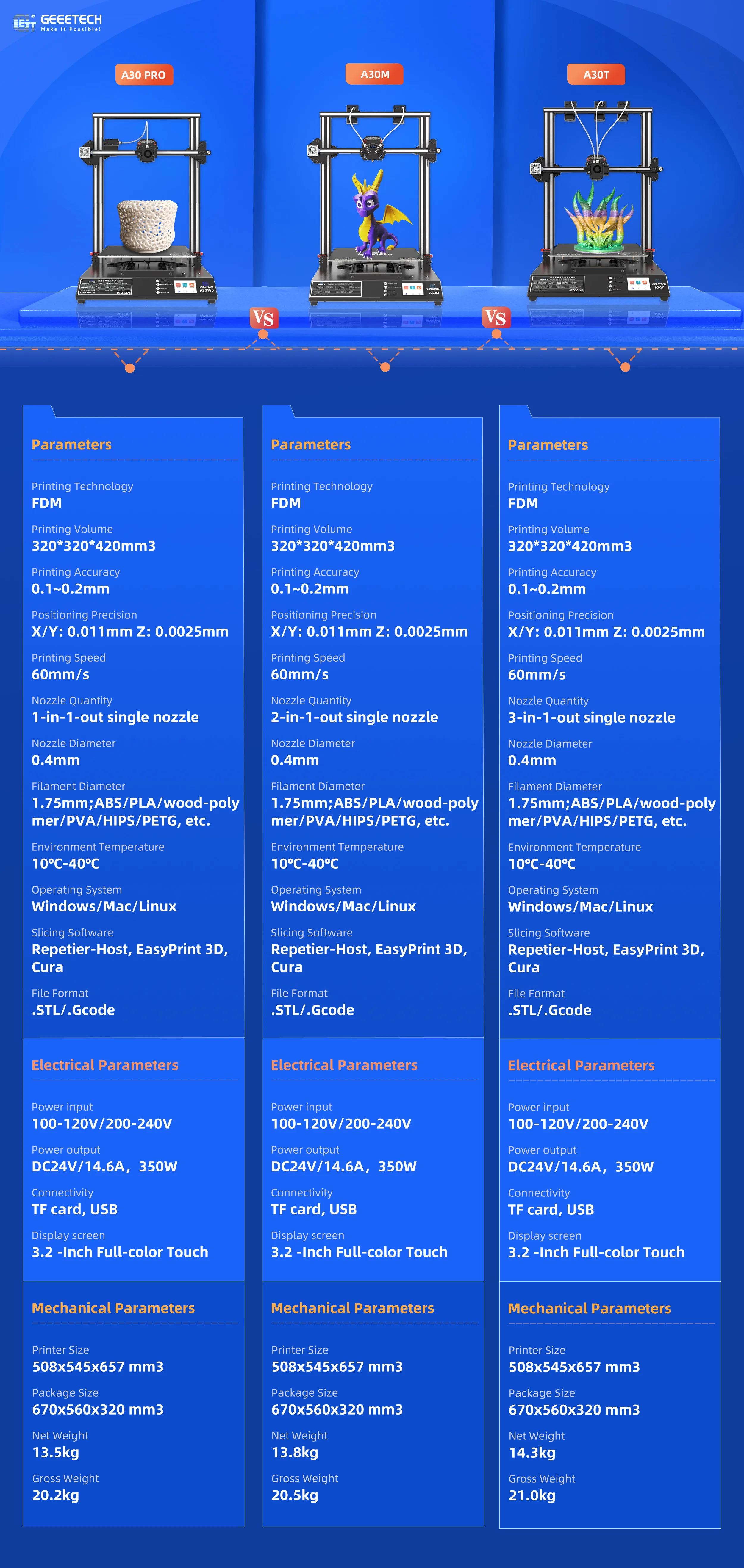 3D-принтер GEEETECH A30MA30TA30 Pro, бесшумная высокоточная печать разных цветов, сенсорный экран FDM