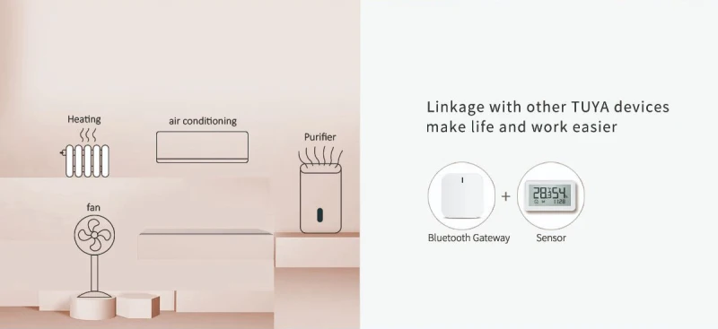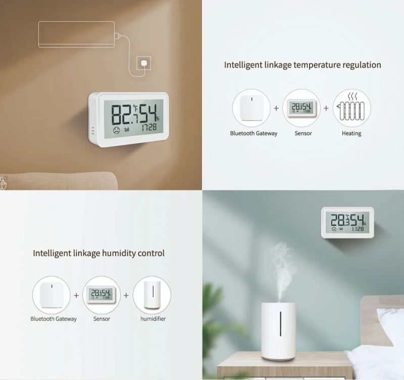 Через приложение «Мобильный телефон» вы можете использовать его с другими смарт-устройствами для создания собственной смарт-сцены. В соответствии с датчиком температуры и влажности, вы можете регулировать влажность и температуру в окружающей среде.