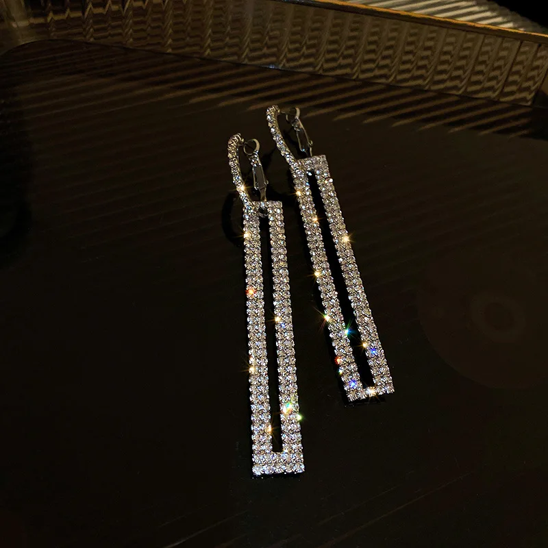 XIALUOKE модные длинные геометрические висячие серьги, роскошные прямоугольные стразы, серьги для женщин, вечерние свадебные ювелирные изделия, Новинка