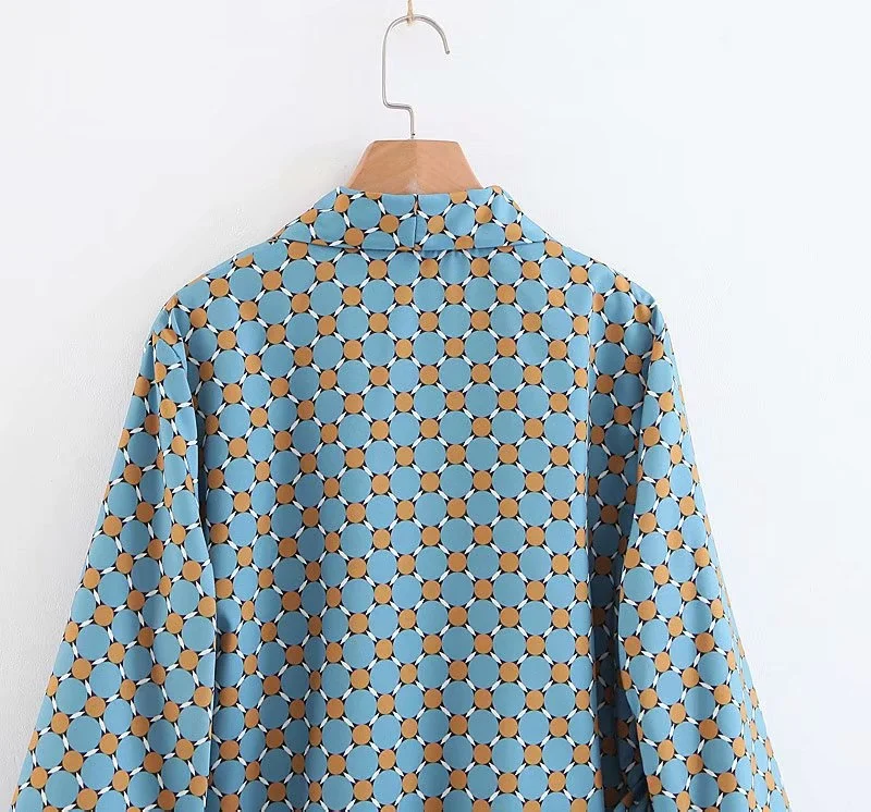 Женские костюмы, весна 2022, свободная синяя куртка-кимоно с принто...