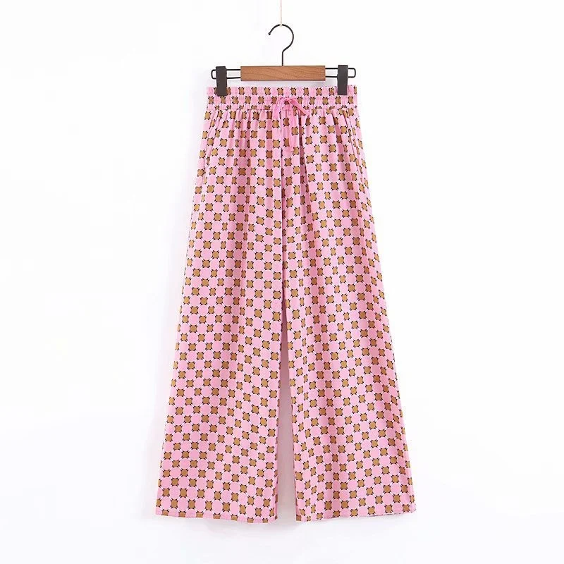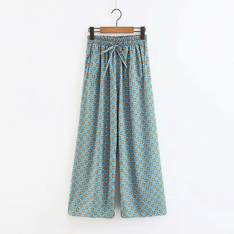 Женские костюмы 2021, осенняя синяя куртка-кимоно с принтом и рукавами с перьями, брюки с широкими штанинами, костюмы из двух предметов Viintage