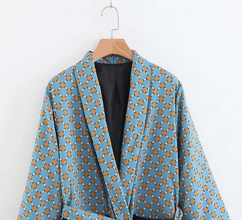 Женский костюм, новинка 2022, синее кимоно с принтом, пиджак с рука...