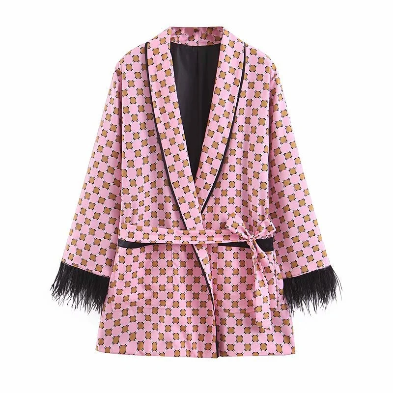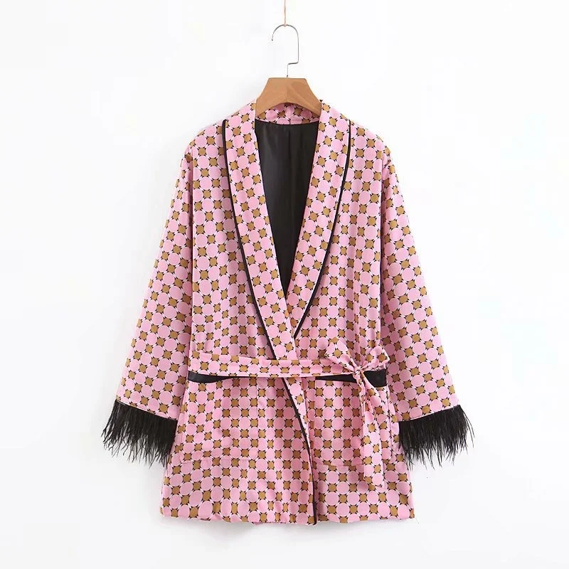 Пиджак-кимоно Женский с рукавами с перьями и широкими штанинами, мо...