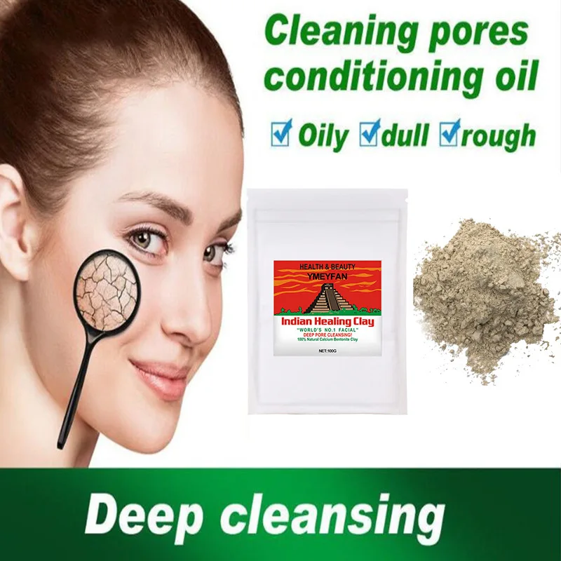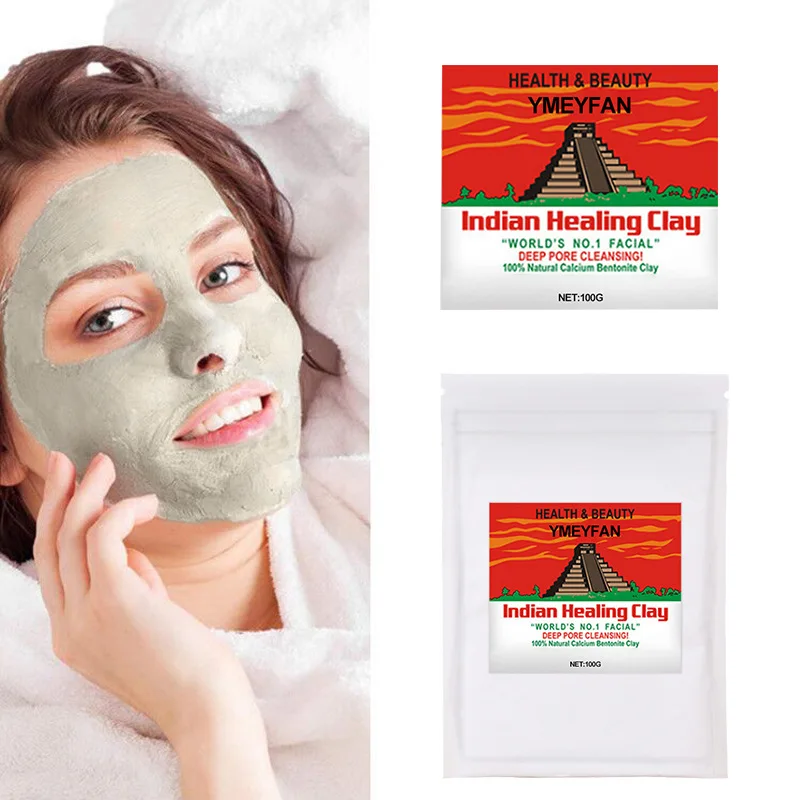 100 г индийская лечебная глина, маска для лица, черные точки, кожа, осветление тона кожи, сужение пор, увлажнение, уход за кожей