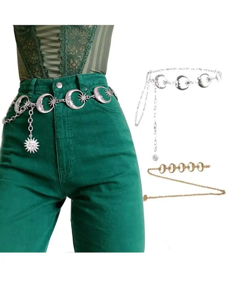 Металлическая цепочка, поясная цепь в стиле панк, металлическая цепочка в форме Луны, ремни с высокой подвеской, поясной ремень, женский ремень, ремень в форме Луны, Goth E9C6