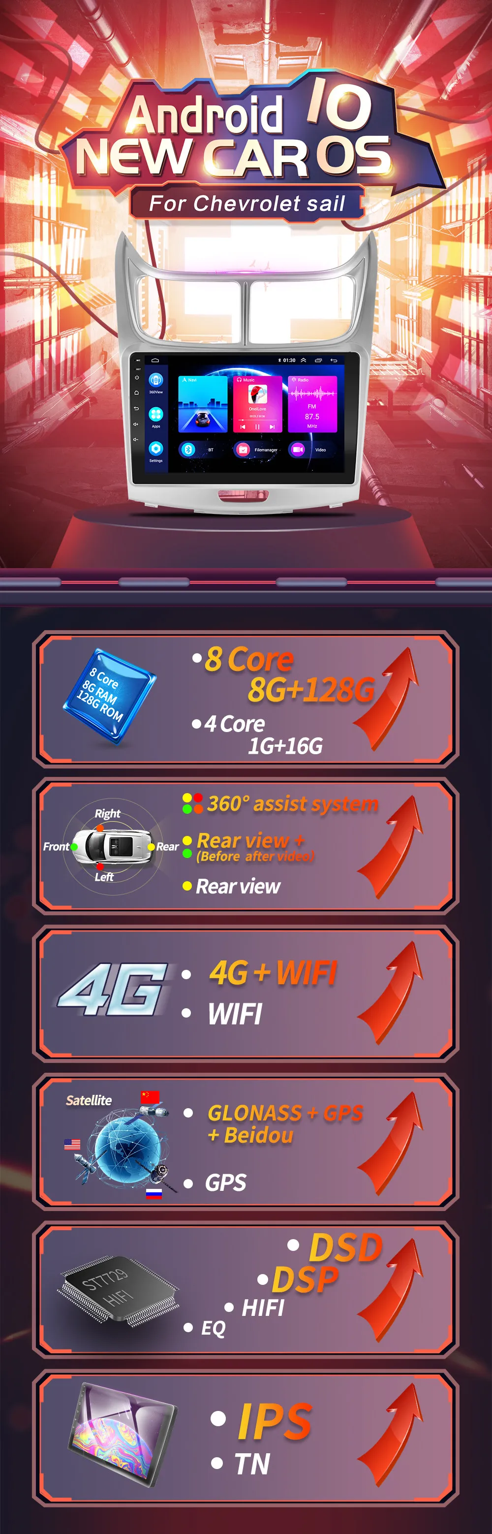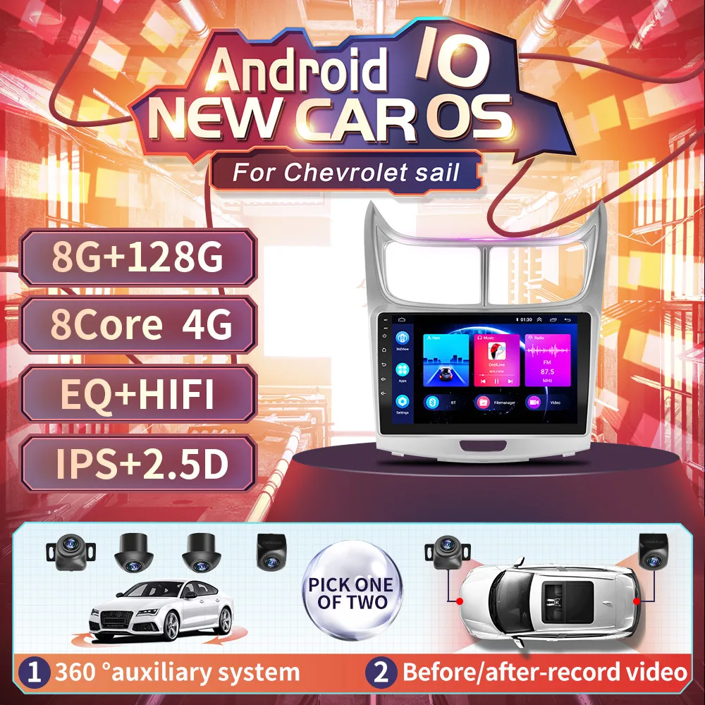 Автомагнитола 2 Din, Android 10, GPS, 8 + 360 ГГц, Bluetooth, для Chevrolet Sail 128 2009-2010