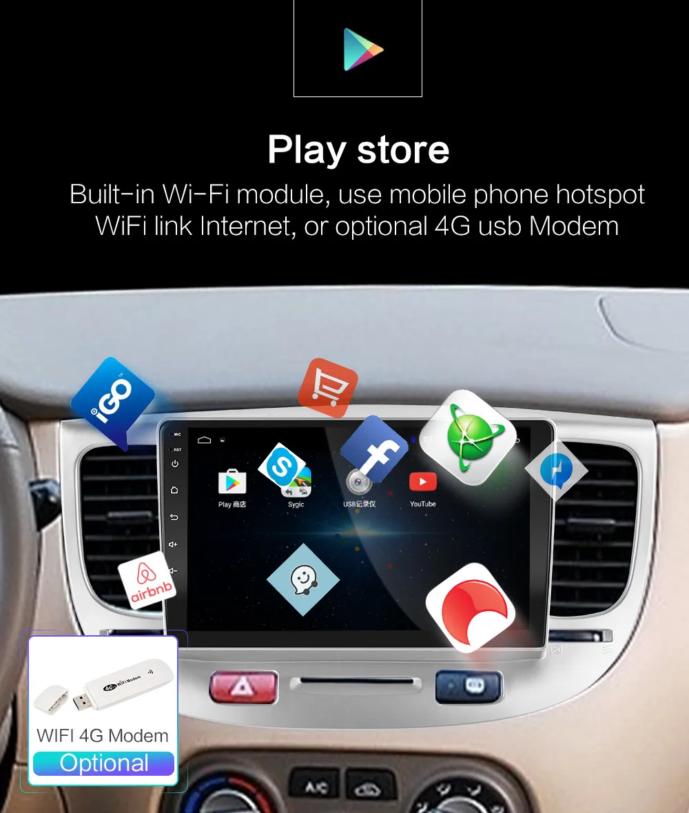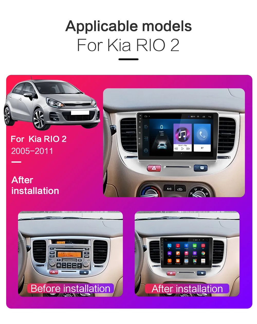Для KIA RIO 2 2005 2006 2007 2008 2009 2010 20111, 4-х ядерный конфигурация включает в себя (Оперативная память + Встроенная память): 1 Гб + 16 ГБ/2 ГБ + 16 ГБ/2G + 32G / 4G-SIM-3560-2G + 32G [дополнительно];2, 8-ядерный конфигурация включает в себя (Оперативная память + Встроенная память): 7260-2G + 32G / 7260-4G + 64G / 7260-6G + 128G / 7260-8G + 128G / 4G-SIM-5760-2G + 32G / 4G-SIM-5760-4G + 64G / 4G-SIM-5760-6G + 128G / 4G-SIM-5760-8G + 128G [опционально];3, 4-х ядерный содержит: версия: Android 8,1;Четырехъядерный процессор MTK8227 / Cortex-A7Поддержка автомобиля logo5; Sfactory пароль: 8888Разрешение: HD 2.5D,1024*600;Не поддерживает функцию AM, функцию RDS;Обычная посылка WiFi поддерживает функцию видеовыхода;3560-4G-SIM-WiFi версия: Android 8,1; Поддержка DSP; Функция разделения экрана, не поддерживает функцию видеовыхода;4, 8-ядерный содержит версия: Android 10;Восемь ядер: CPU Quad core и GPU Quad core соответственно;Поддержка автомобиля logo5,Sfactory пароль: 8888; Разрешение: HD 2.5D,1024*600;Версия 7260L-WIFI: поддерживает функции IPS,DSP, сплит-экрана, не поддерживает видеовыход;4G-SIM-5760-WIFI и версия: поддерживает функции DSP , IPS , 2.5D,1280*720,Carplay, сплит-экрана; Не поддерживает видеовыход;5. Операционная система Android может установить приложение Google Play store Skype Facebook youTube Twitter и т. Д.;6. Поддержка: радиостанция, Bluetooth Вызов, Bluetooth музыка, управление рулевым колесом, встроенный WiFi, MP3, видео музыка (MPG, AVI), навигация, видеовыход, зеркальная связь, USB 4G LTE WIFI ключ и другие функции;