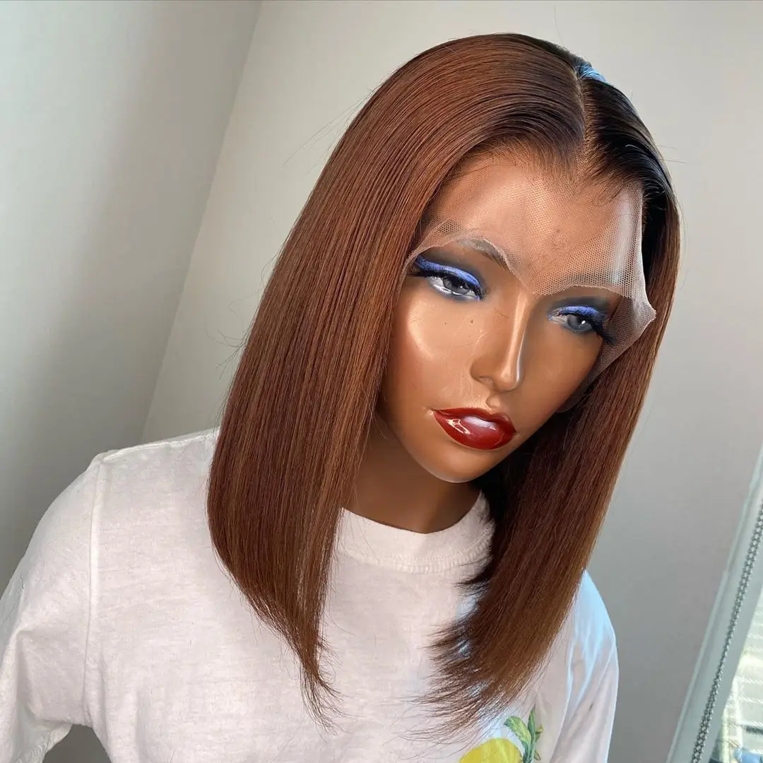 Парики из человеческих волос с эффектом омбре, светлые и коричневые на сетке спереди 13x 4, короткие, с защитой от выщипывания, с прозрачными кружевами спереди и спереди