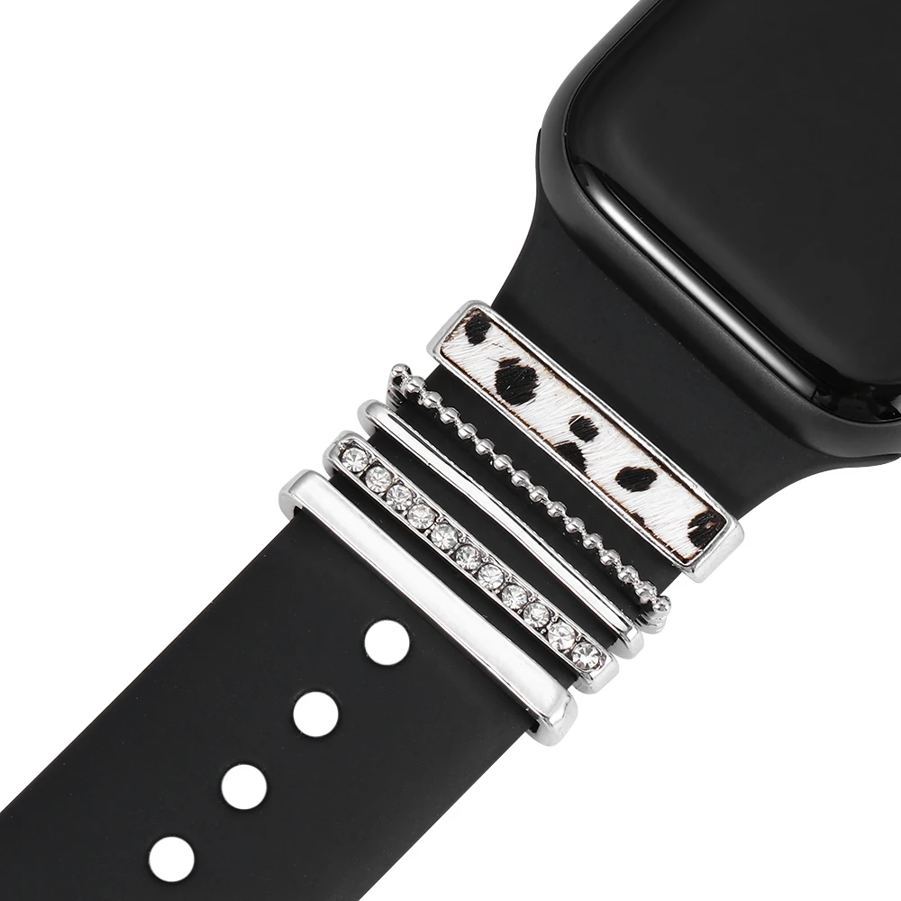 Леопардовый декоративный Шарм-кольцо для Apple Watch, ремешок для умных часов, силиконовый ремешок, аксессуары, Блестящий Бриллиант для браслета iwatch