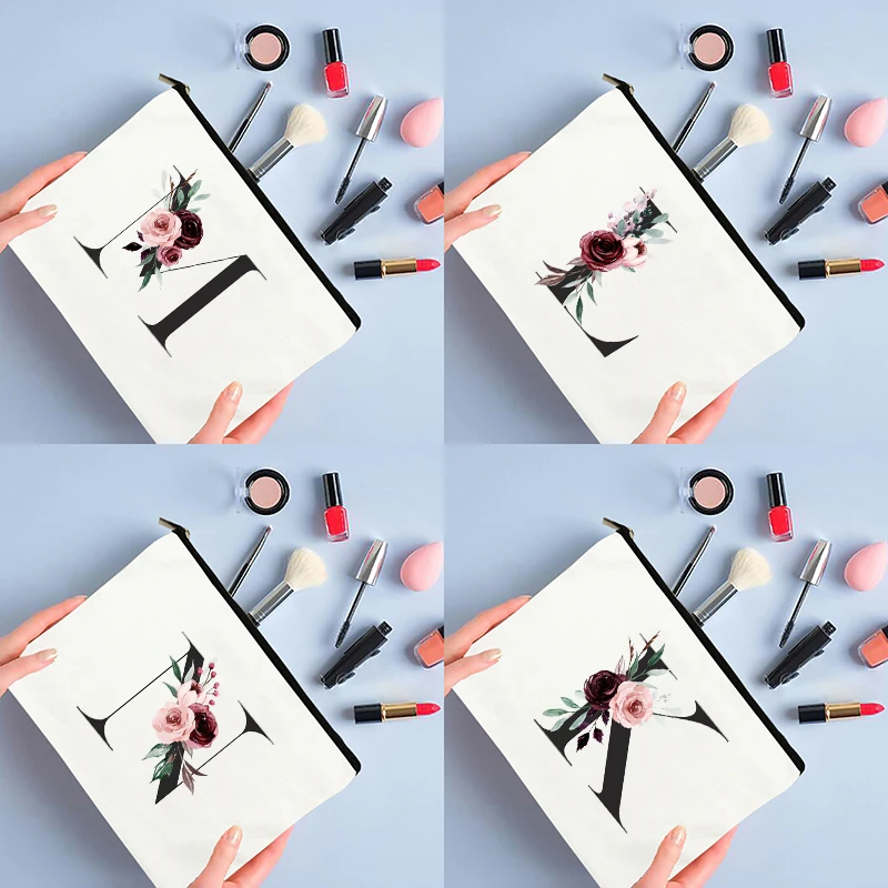 Женская косметичка с цветами и буквами, дорожная косметичка для мытья, органайзер, чехол для красоты, Лучшие идеи для подарка на выпускной, косметички