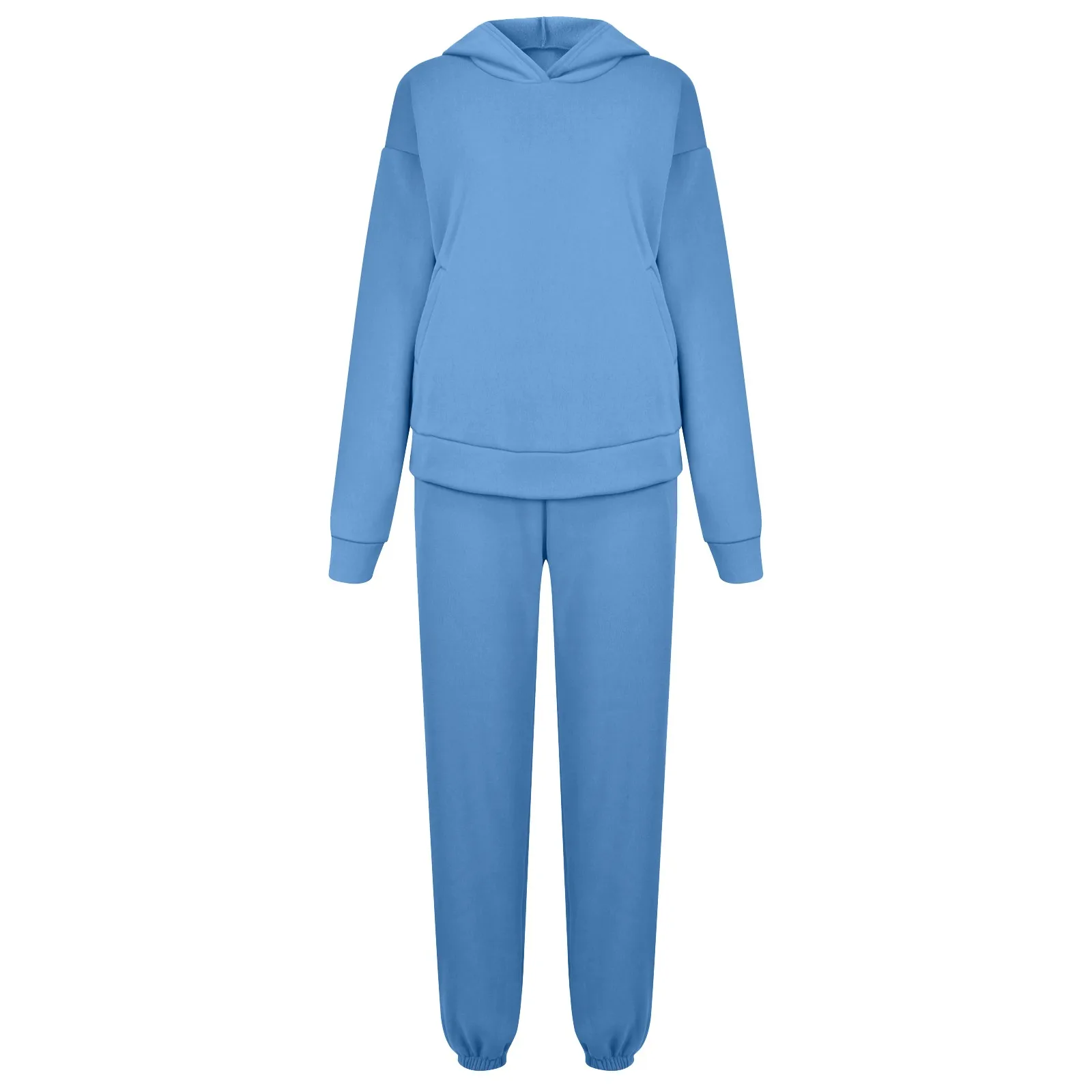 Модный женский спортивный костюм, однотонная Толстовка и спортивные штаны с карманами, спортивная одежда, комплекты брюк, женская одежда