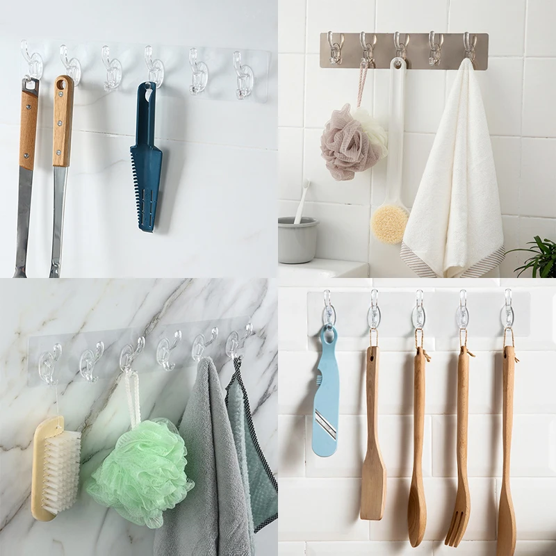 3/5/6 строк вешалка для ногтей настенные крючки Невидимый клейкий стикер настенный крепкий домашний декор прозрачный липкий крючок для хранения