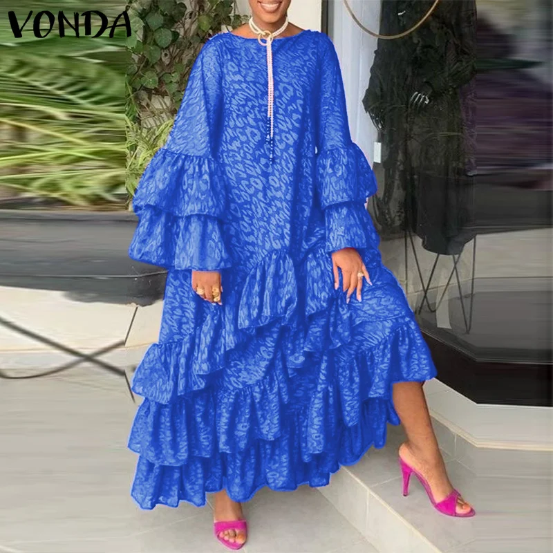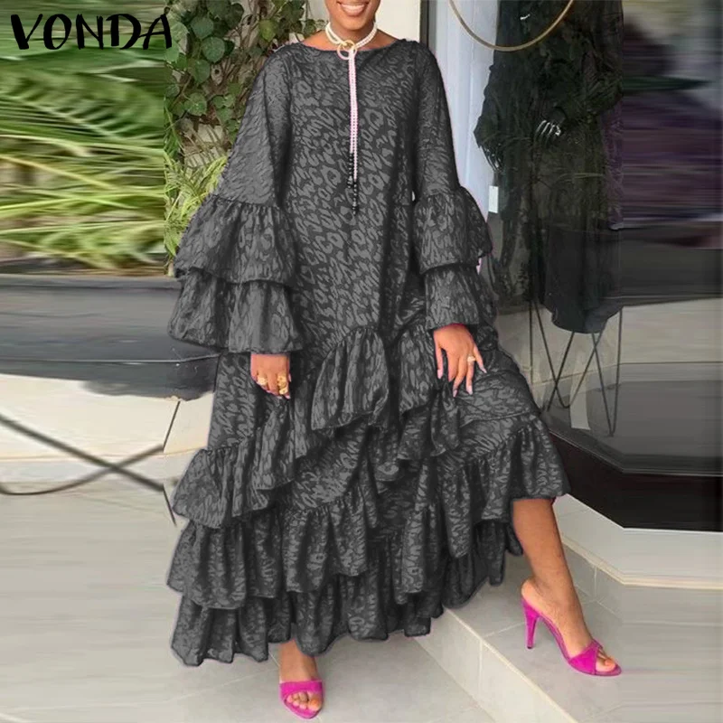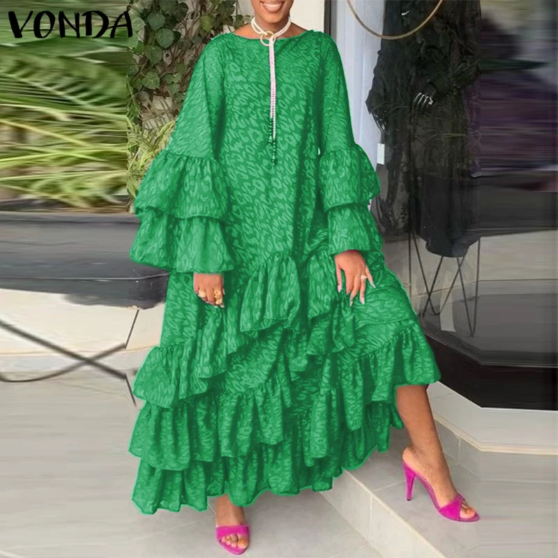 Осеннее платье-макси 2021 VONDA, винтажное пляжное платье с длинным...