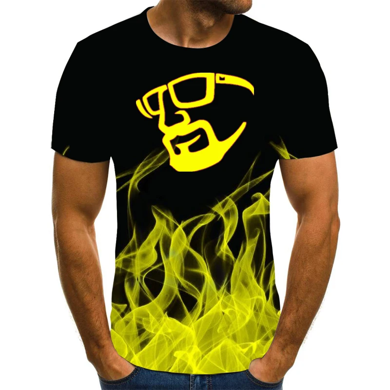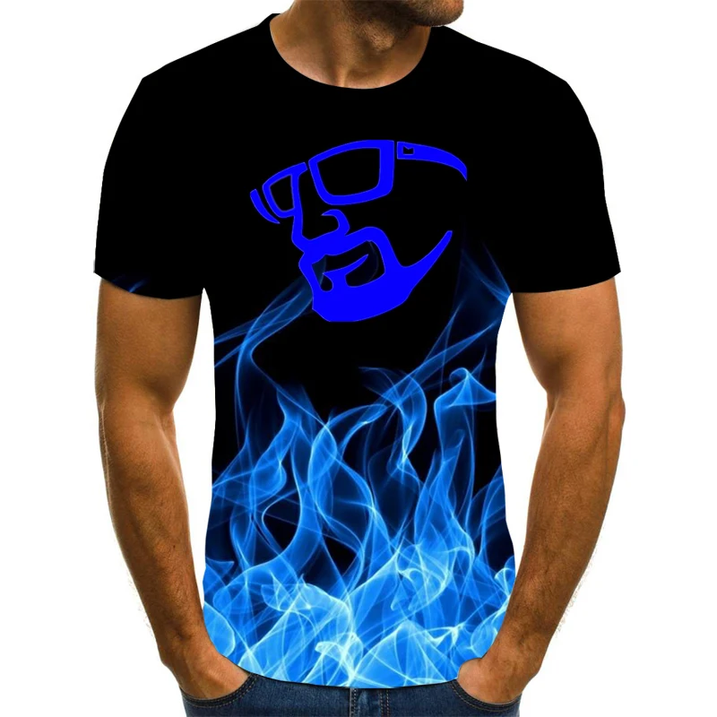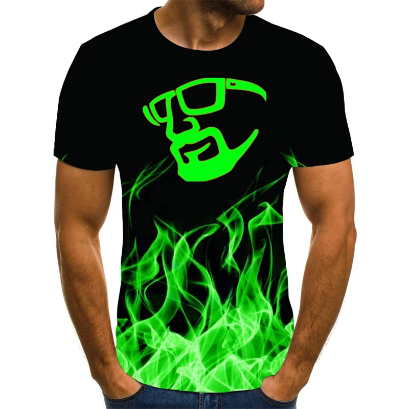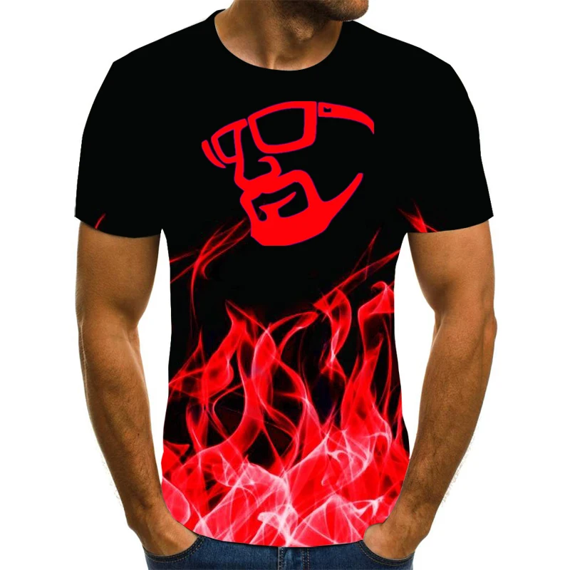 Новинка 2020, футболка с рисунком пламени, Мужская футболка с 3D пр...