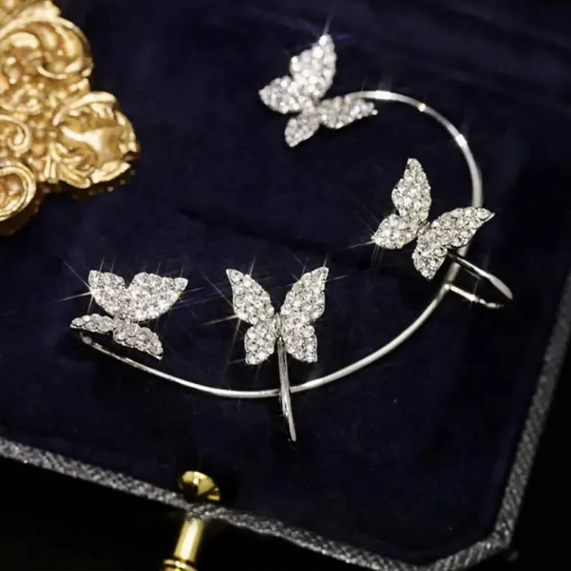 Позолоченные металлические клипсы для ушей для женщин, милые изысканные сверкающие циркониевые Клипсы-бабочки для ушей, серьги-клипсы, ювелирные изделия во французском стиле