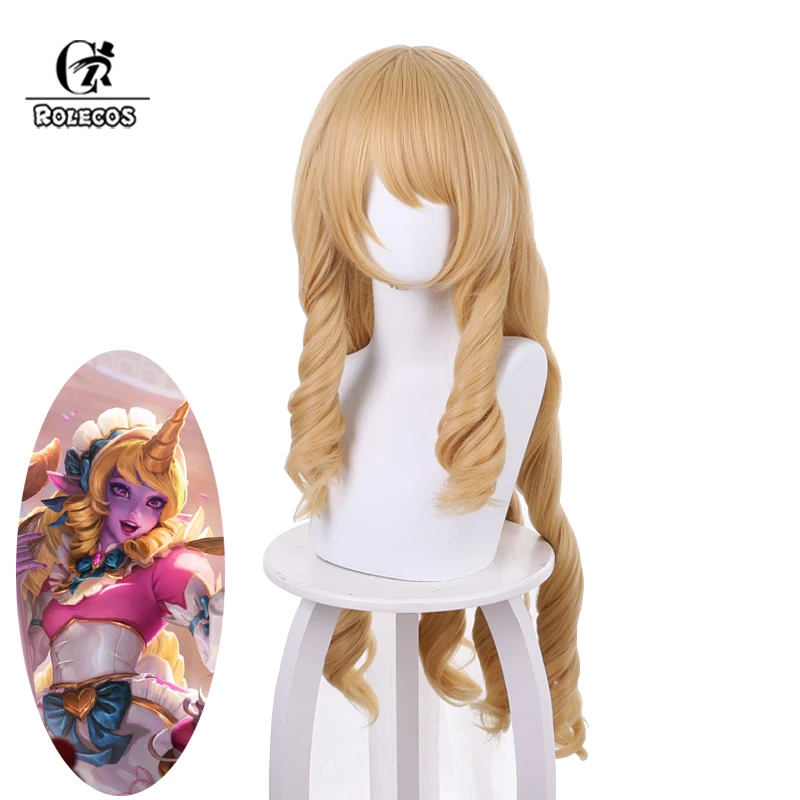 Парик для косплея ROLECOS LOL Soraka, парик для косплея кафе Cutie Soraka, длиной 80 см, желтый женский парик, термостойкие синтетические волосы