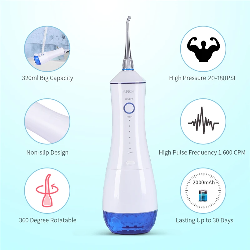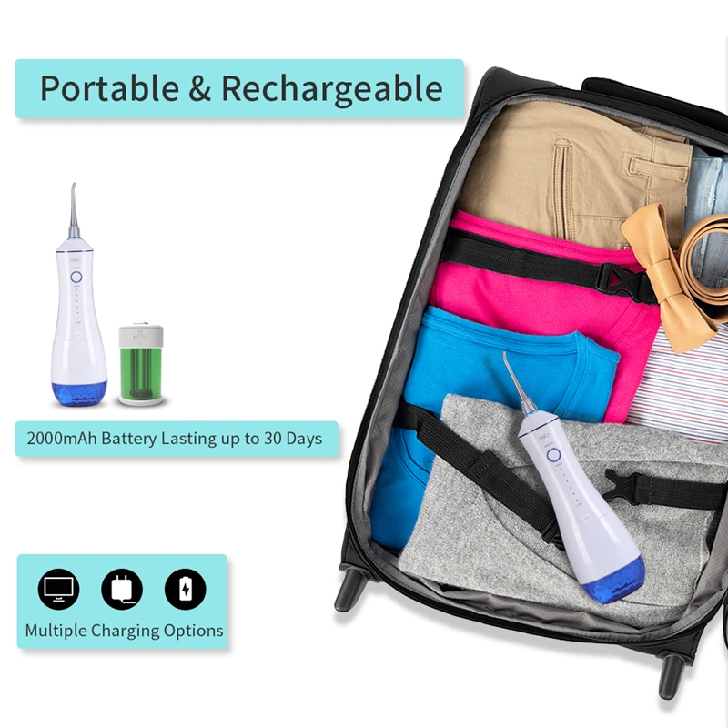 Ирригатор для полости рта, перезаряжаемый от USB, Водонепроницаемый IPX7, 6 режимов, 20-320 psi