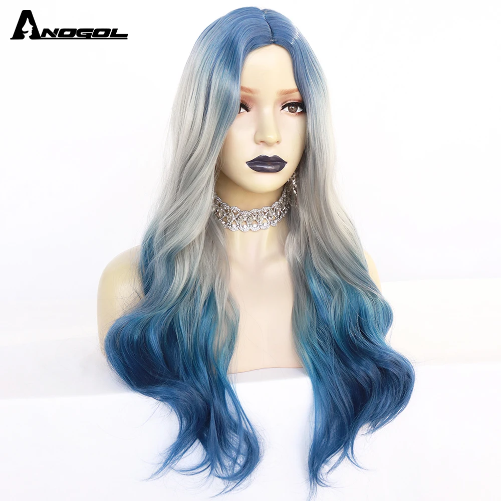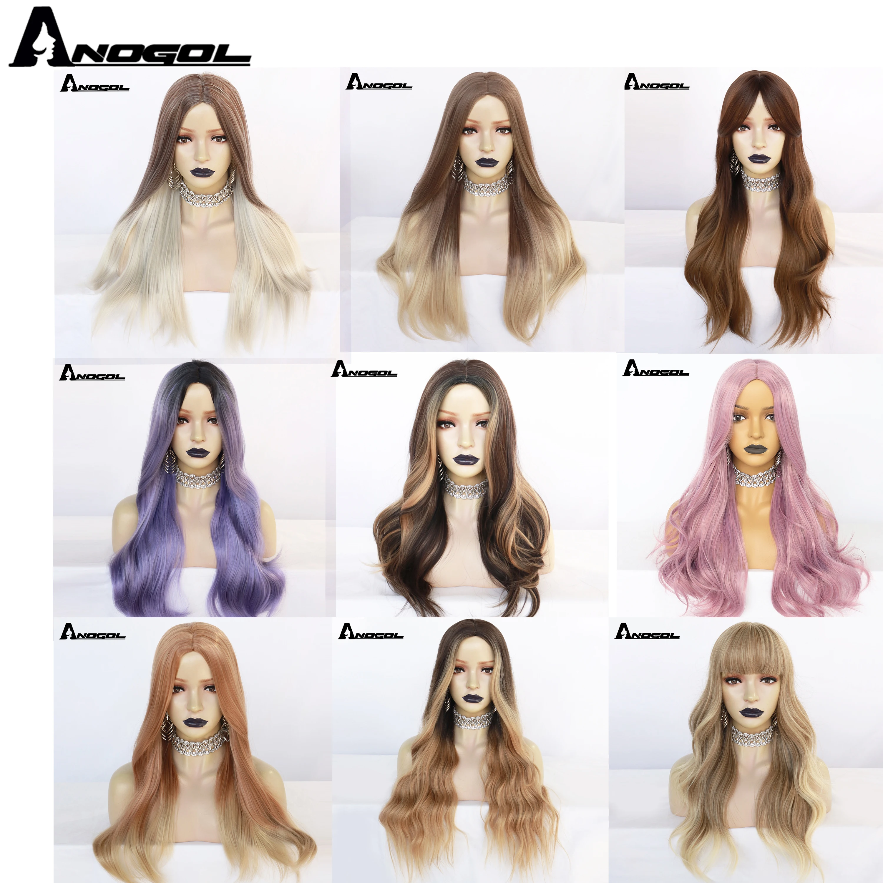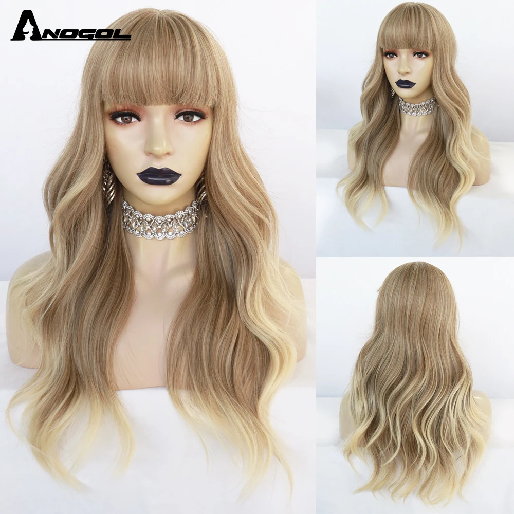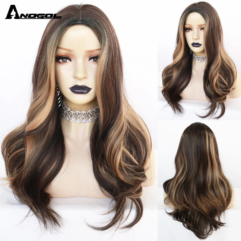 Anogol натуральные волнистые Омбре коричневые Синтетические длинные парики светильник-светлый Платиновый термостойкий парик для косплея вечеринки Лолита парик для W