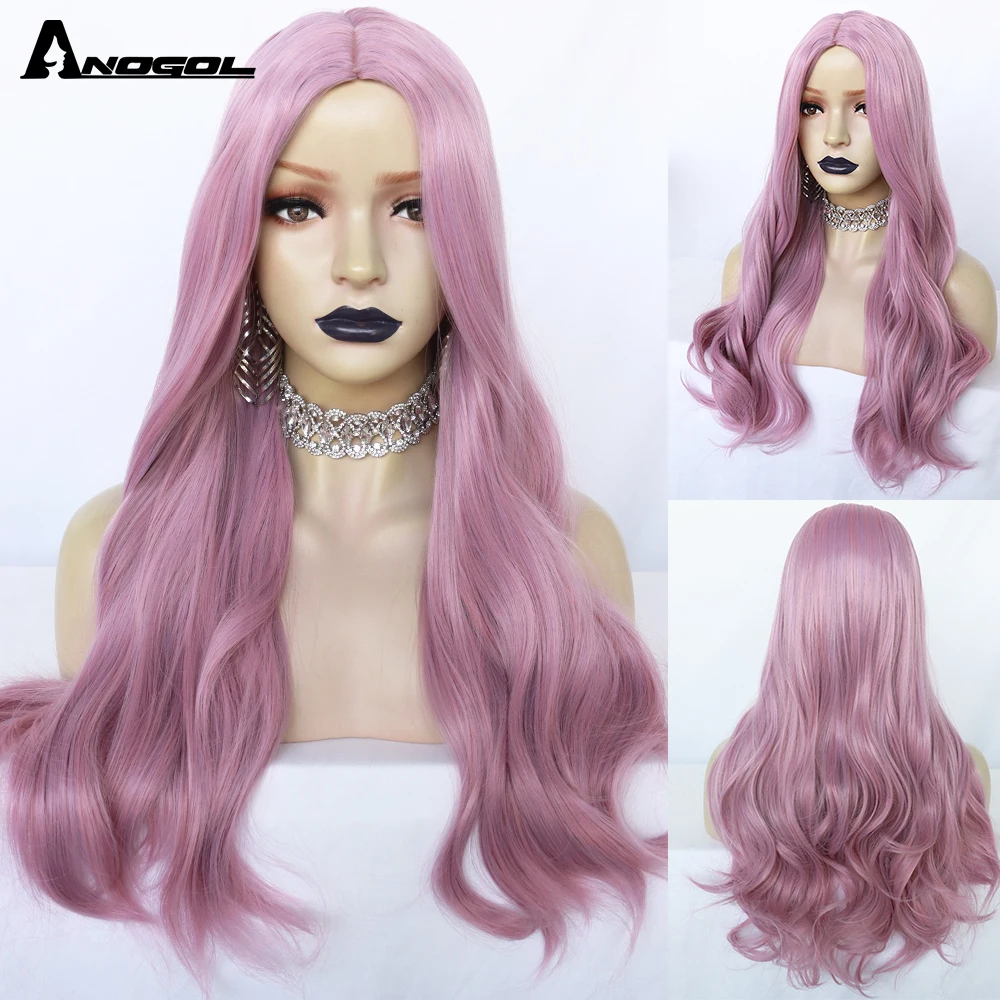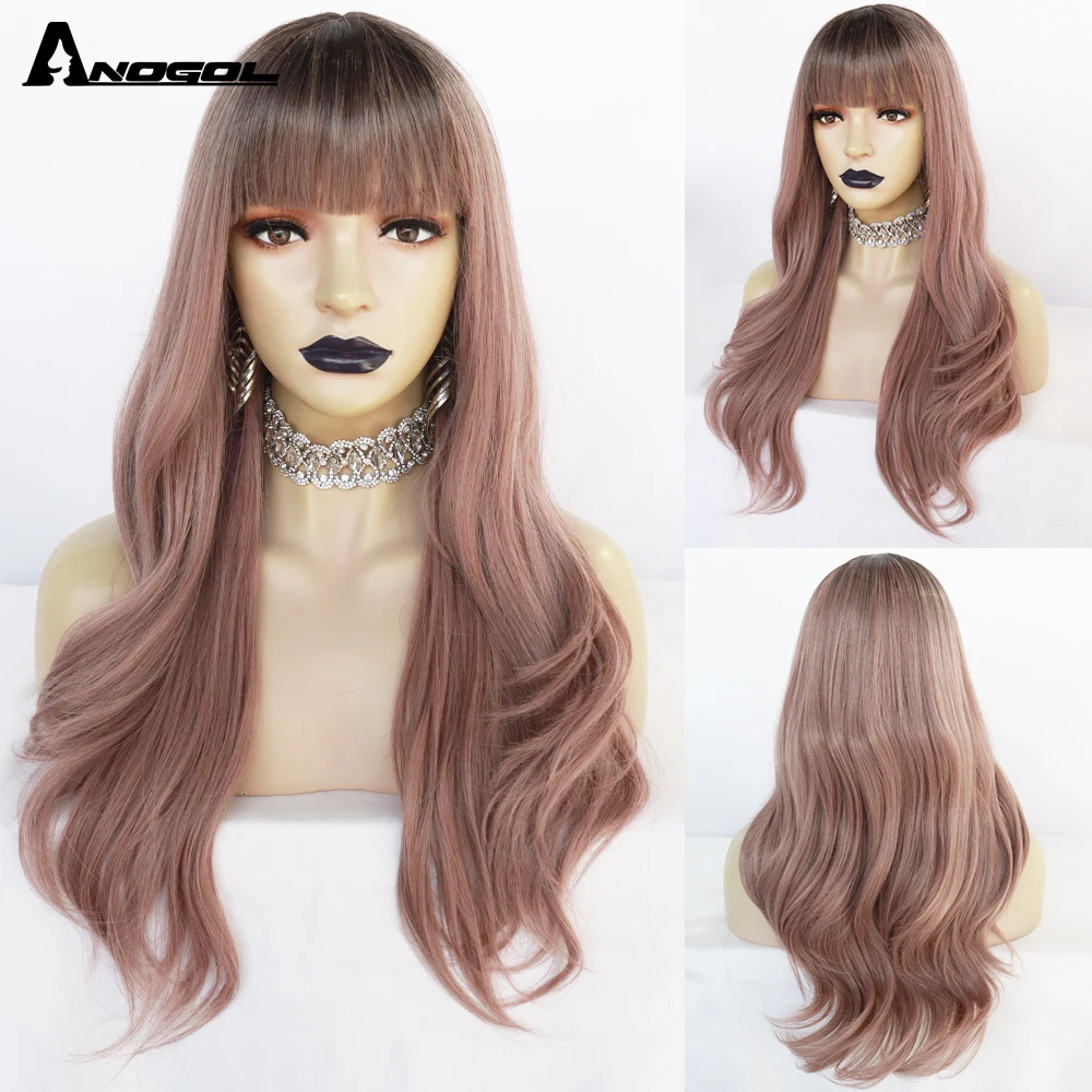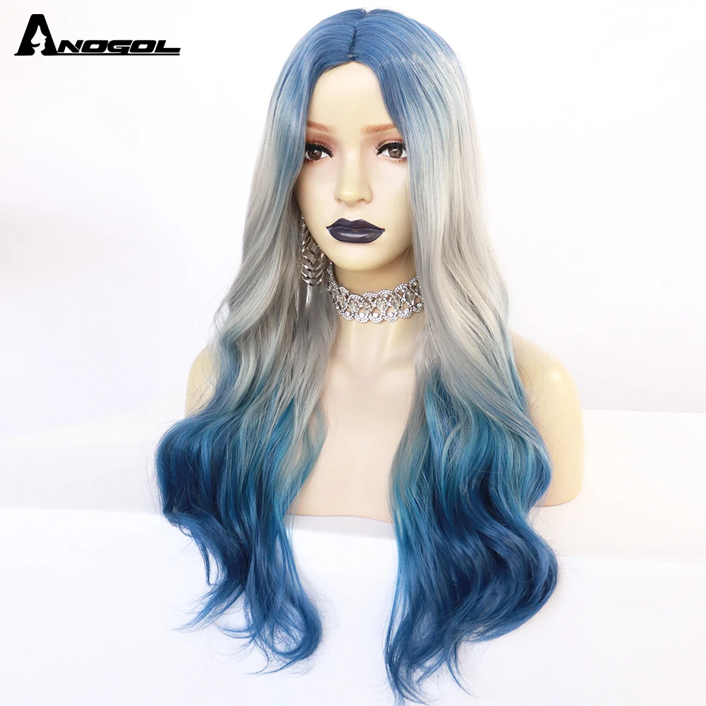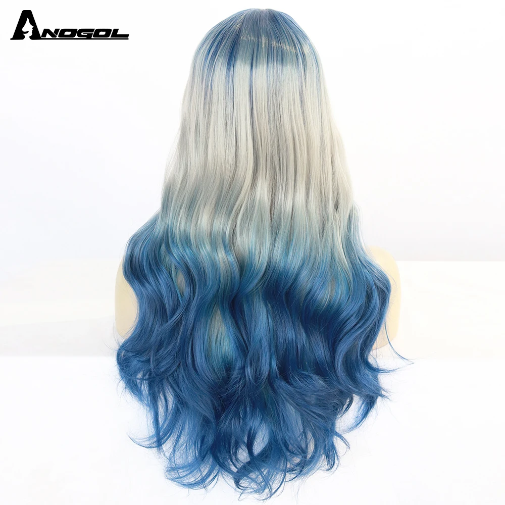 Anogol натуральные волнистые Омбре коричневые Синтетические длинные парики светильник-светлый Платиновый термостойкий парик для косплея вечеринки Лолита парик для W