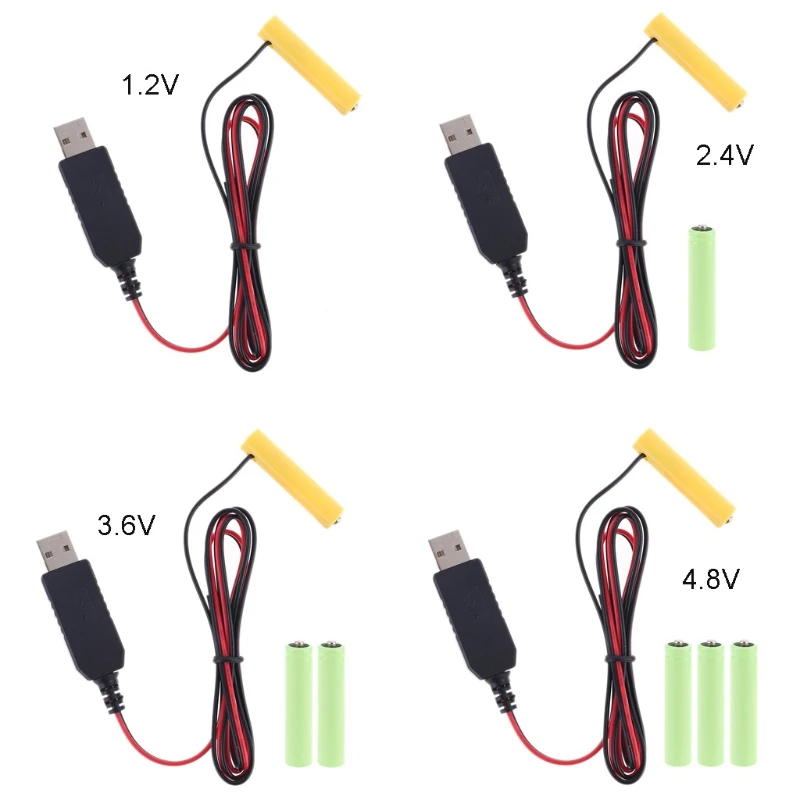 USB к 1,2 в, 2,4 В, 3,6 В, 4,8 В, USB-кабель для замены 1-4 шт. перезаряжаемых батарей 1,2 в Ni-MH NiCd AAA