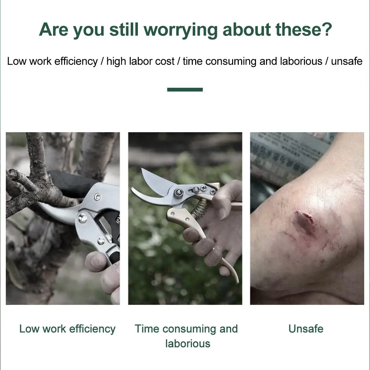 Характеристика:-Низкий уровень шума, хорошая устойчивость к усталости.-Он прост и удобен в использовании, что в 8-10 раз повышает эффективность традиционной ручной обрезки.-Рабочие характеристики стабильны, качество обрезки может соответствовать требованиям цветоводства, и в основном нет сдвига утечки.-Аккумуляторные аккумуляторные секаторные ножницы для резки и обрезки ветвей в фруктовых садах, виноградниках.-Лезвие, изготовлено из вольфрамовой стали, долговечное.-Ergonimic и удобная ручка.-Гибкий в использовании, легко поворачивается, безопасен и надежен, прост в обслуживании, удобен в замене батареи и эксплуатации.-Качество обрезки может соответствовать требованиям садоводства.