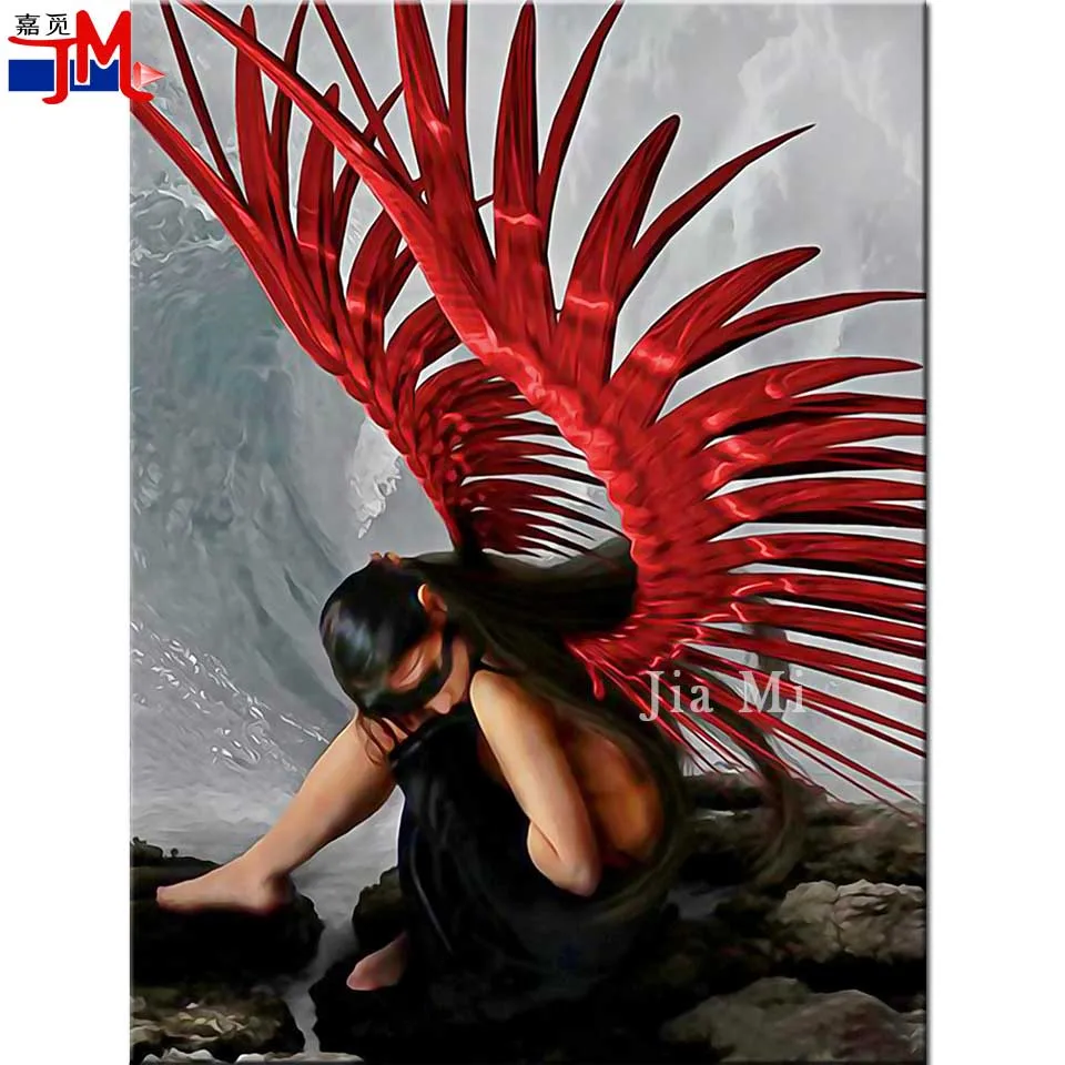 Алмазная 5D Вышивка сделай сам, домашняя Готическая картина с красными крыльями для женщин, полноразмерная, квадратная, круглая, украшение для Стразы