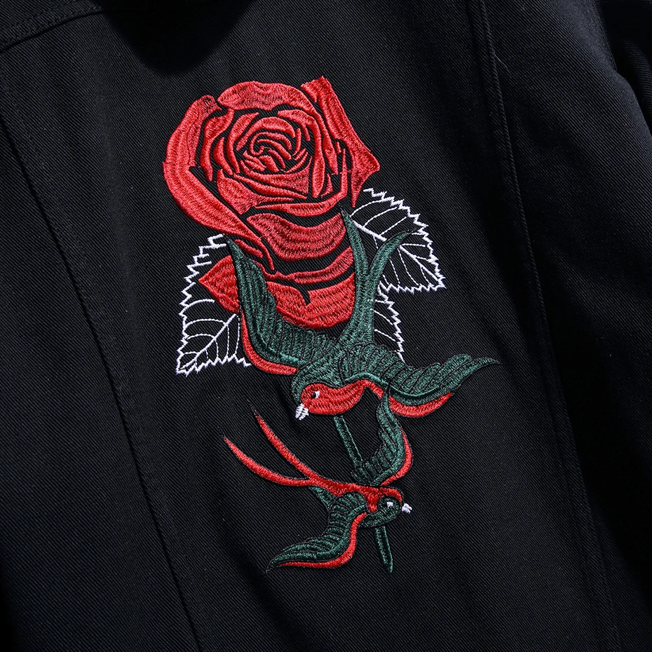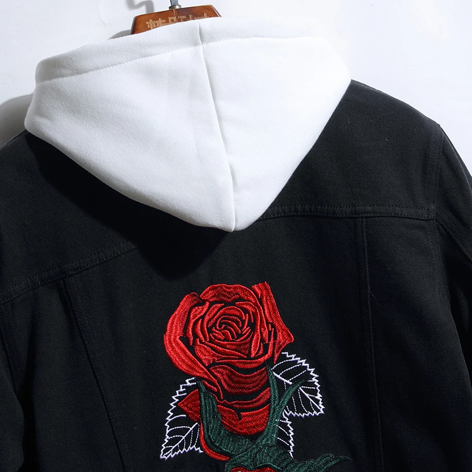 Джинсовая куртка мужская с вышивкой розы, модные джинсовые куртки оверсайз, уличная одежда в стиле хип-хоп, хлопковая Повседневная Верхняя одежда в Корейском стиле