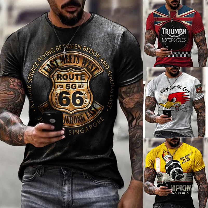 Мужская футболка с 3D-графикой Triumph, Повседневная футболка больш...