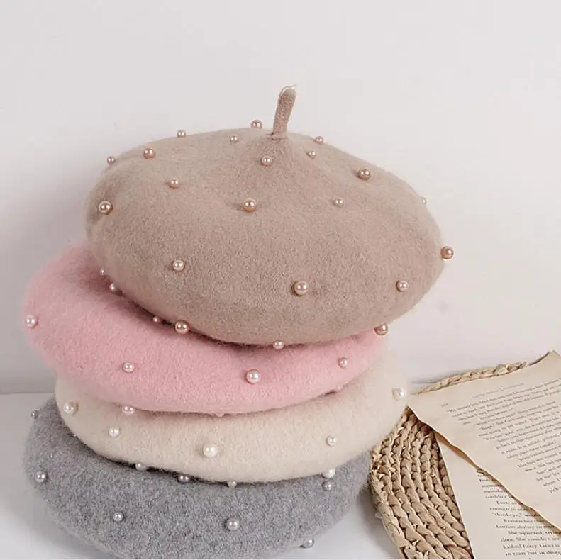 Шерстяная Шапка-берет для маленьких девочек; Классический французский стиль; Зимняя теплая перламутровая шапка с бусинами