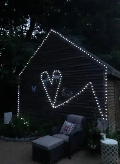 Мне нравятся эти милые сказочные огни! Я хотел, чтобы сказочные огни зашли в сад памяти моей мамы. Сначала я планировал обернуть большое дерево в этом районе, однако, я не хотел повредить дерево ногтями и т. д. Они были легко настроены и выглядят очень красиво в вечернее время. Второй набор будет отправлен в наш патио.