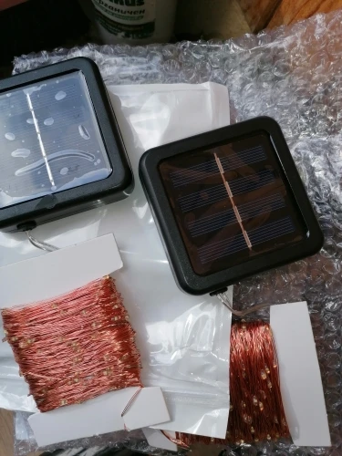 Гирлянда хорошая, на очень тонкой медной проволоке. Учтите что если у вас не самый солнечный город, она скорее всего не будет успевать полностью заряжаться (как в моем случае, Рига) но не спешите её выбрасывать! Внутри солнечной панели стоит обычный перезаряжаемый аккумулятор АА, у него маленькая ёмкость, его легко достать и либо просто зарядить, либо ещё лучше поменять