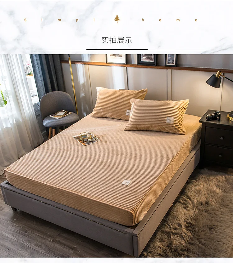 Домашний текстиль, однотонная утолщенная фланелевая теплая натяжная простыня, бархатный пододеяльник, зимний теплый наматрасник, простыня